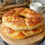 El pan turco, conocido como simit, es una de esas recetas que evocan tradición y sabor en cada bocado. Crujiente por fuera, suave por dentro y cubierto con una capa dorada de semillas de sésamo, este pan es un clásico en Turquía y en toda la gastronomía mediterránea. Es perfecto para acompañar el desayuno, la merienda o incluso como un aperitivo ligero junto con queso, aceitunas y una taza de té.