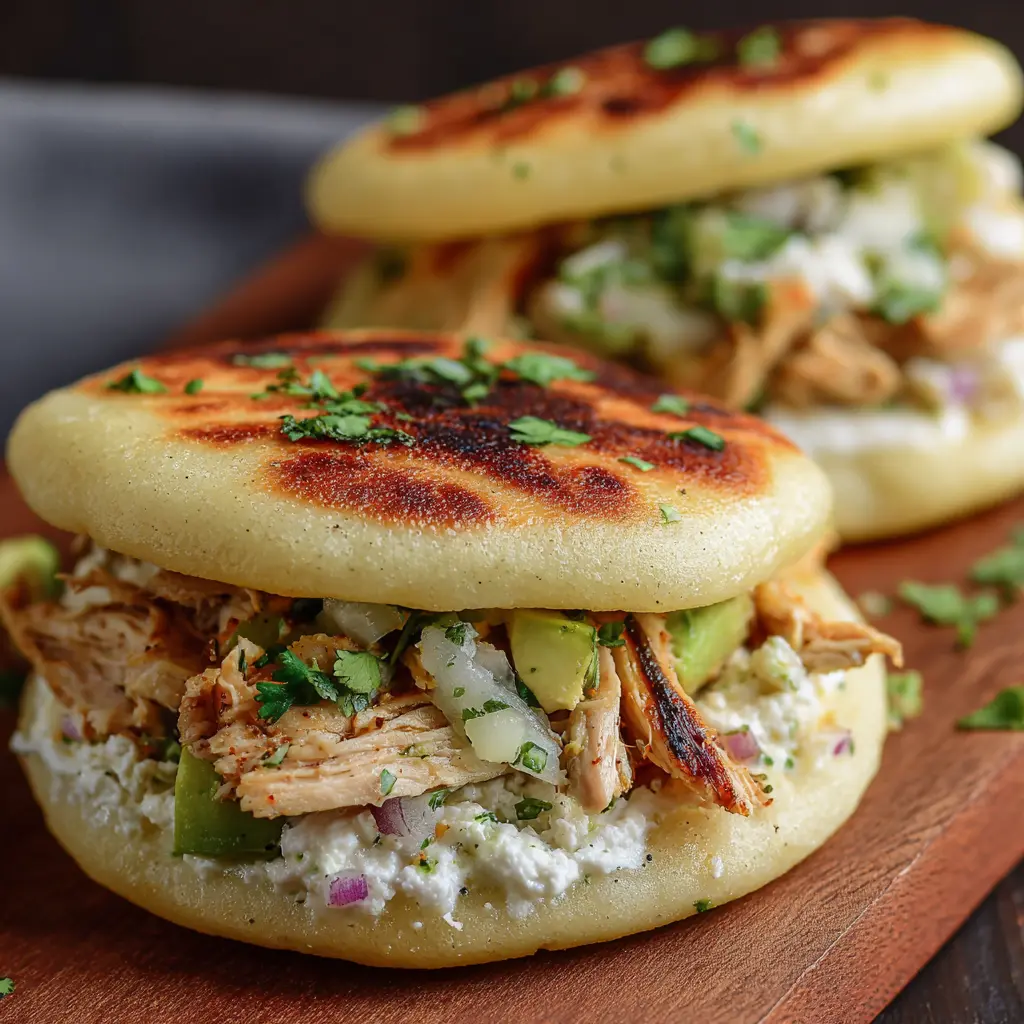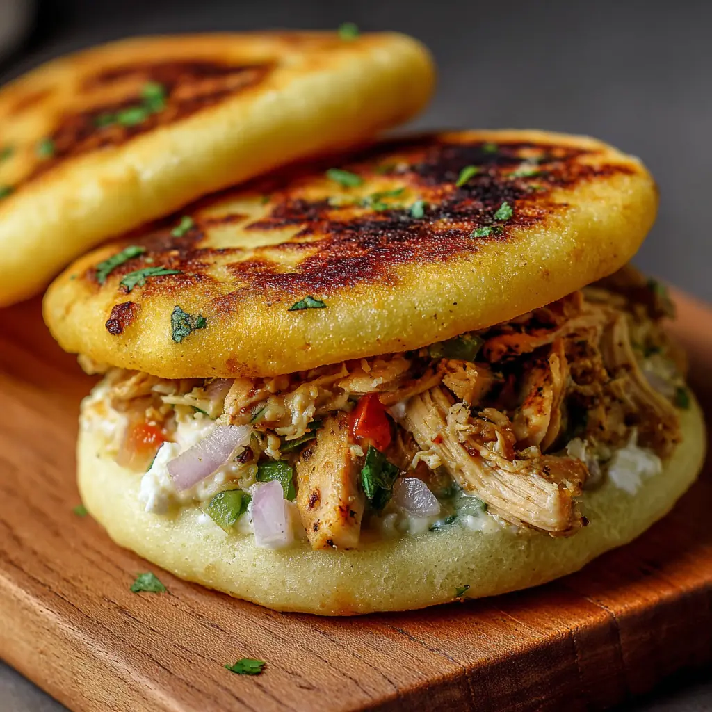 Disfruta de unas deliciosas arepas rellenas de pollo y cebollas, una receta fácil y perfecta para cualquier ocasión.