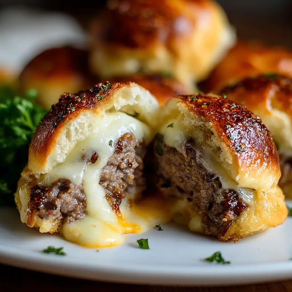 Bombas de hamburguesa con queso, ajo y parmesano irresistibles