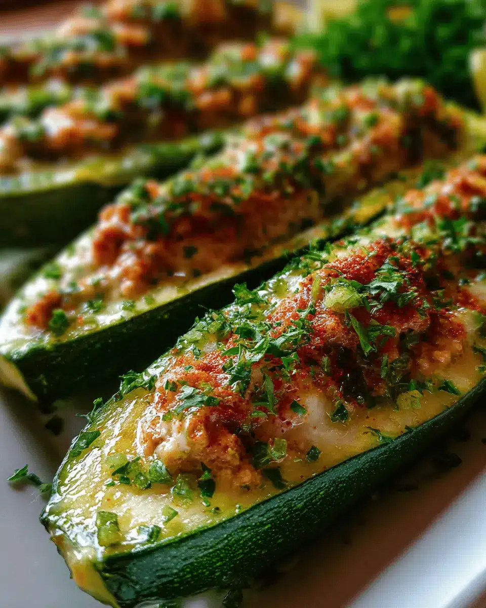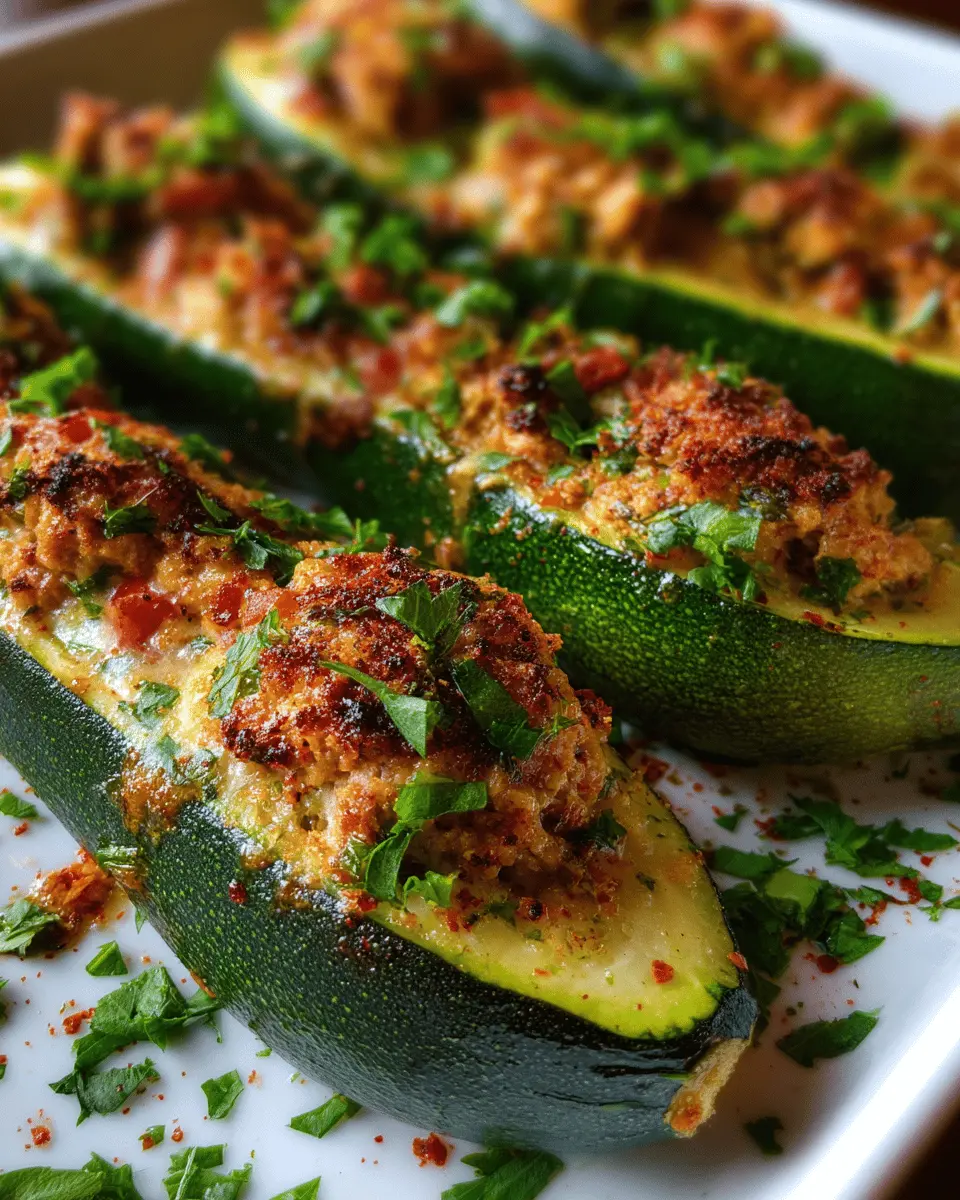 Estos calabacines rellenos de atún no solo son saludables, sino que también son una forma elegante de impresionar a tus amigos y familiares en una cena. ¡Espero que disfrutes cocinando y compartiendo este delicioso plato! Si quieres más recetas o tips sobre cómo variar los rellenos, no dudes en explorar este recurso adicional sobre cocina saludable.