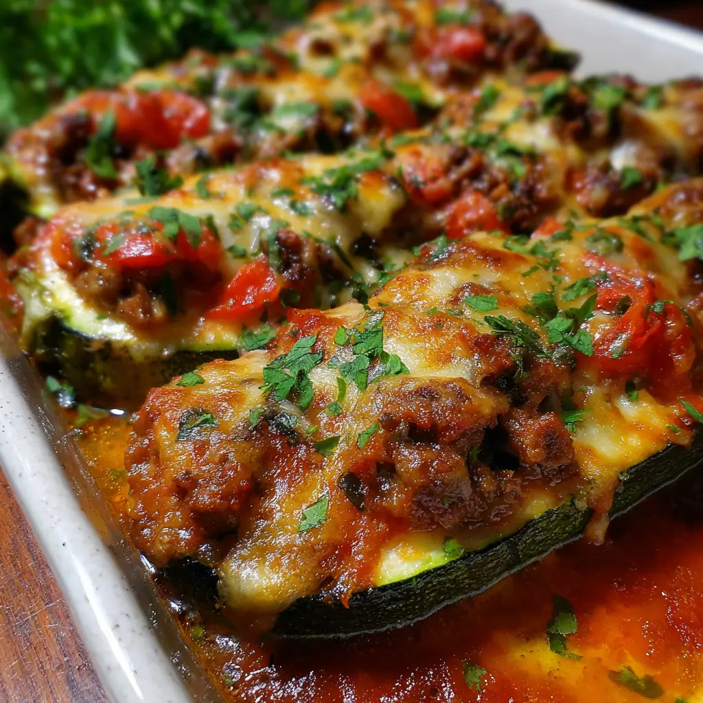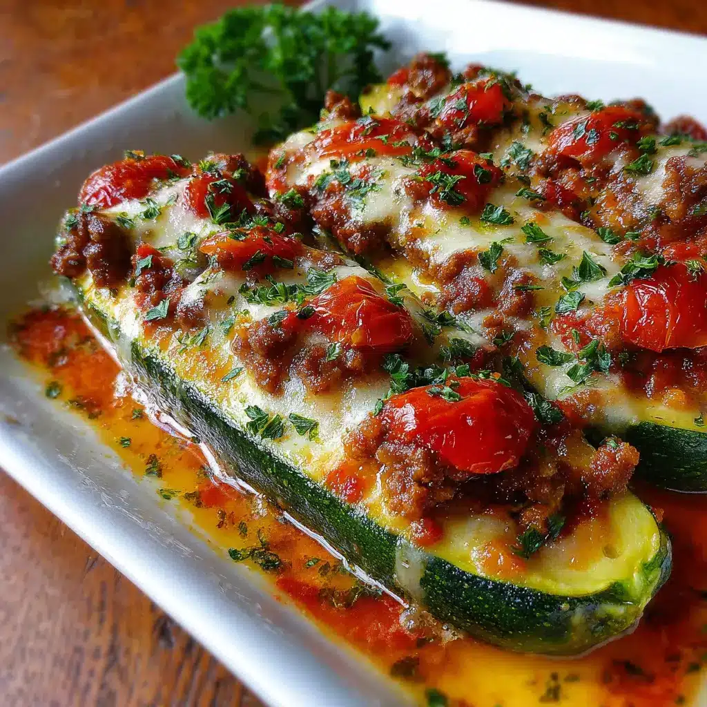 Calabacines Rellenos Gratinados con Carne y Salsa de Tomate Deliciosos