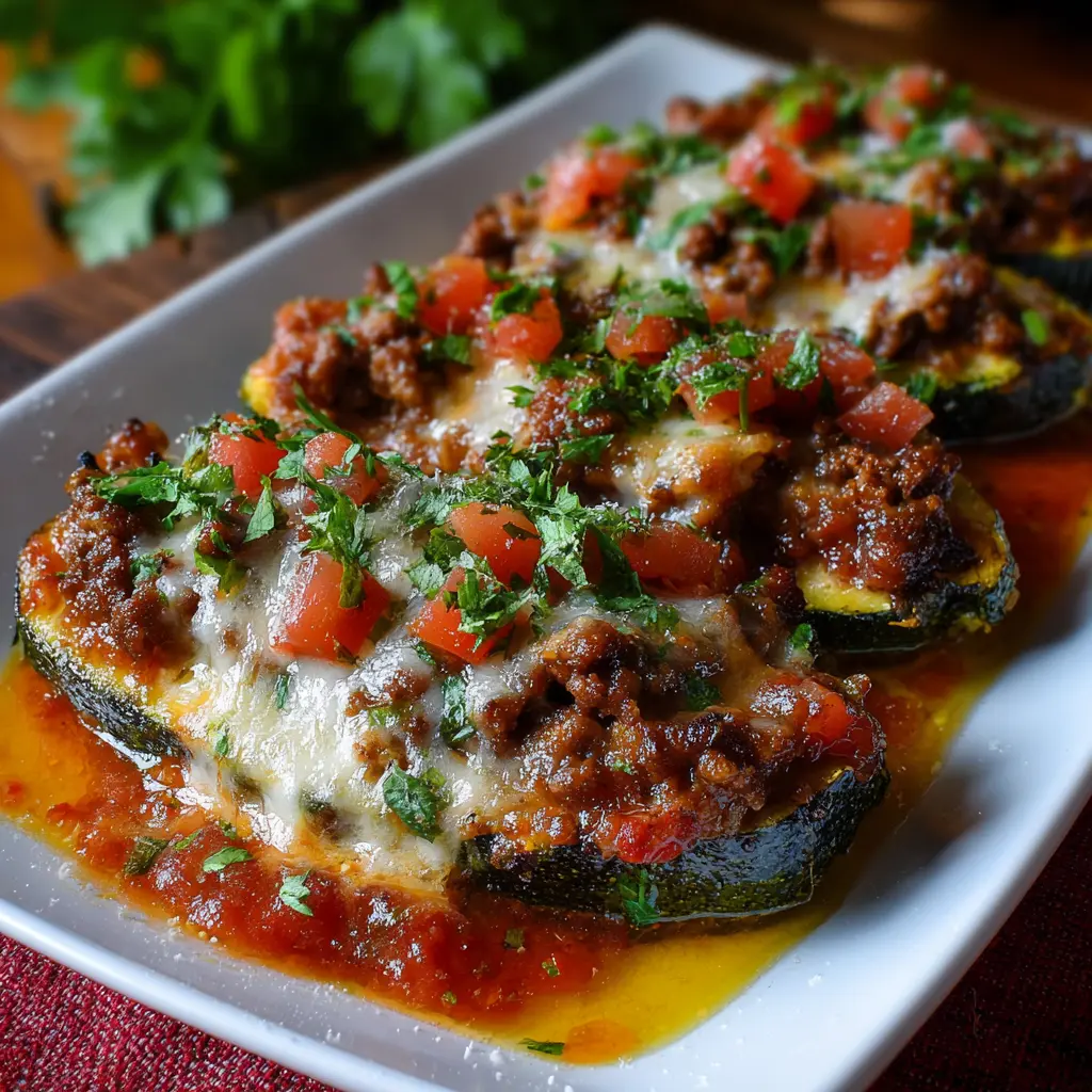 Disfruta de estos calabacines rellenos gratinados, una delicia cargada de sabor y perfectamente acompañados con salsa de tomate.