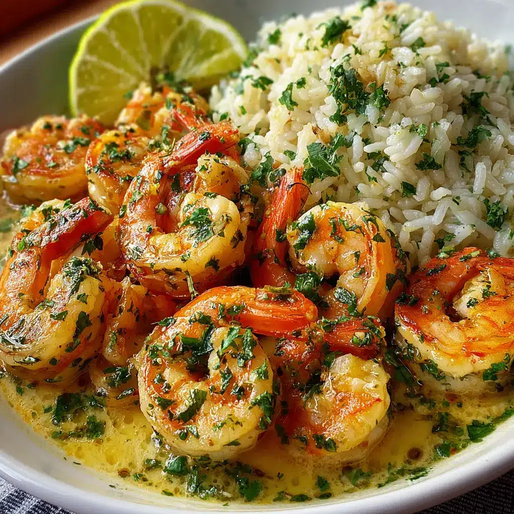 - Sirve sobre el arroz: Coloca el arroz de cilantro en platos y algunos de los camarones al limón y ajo, rociando la salsa por encima.