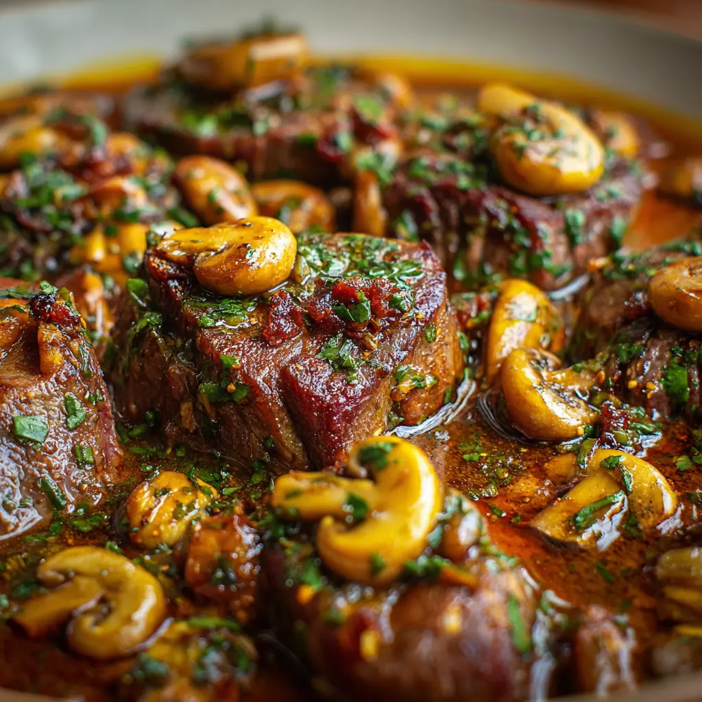 Variaciones en la Carne de Res al Ajo con Champiñones