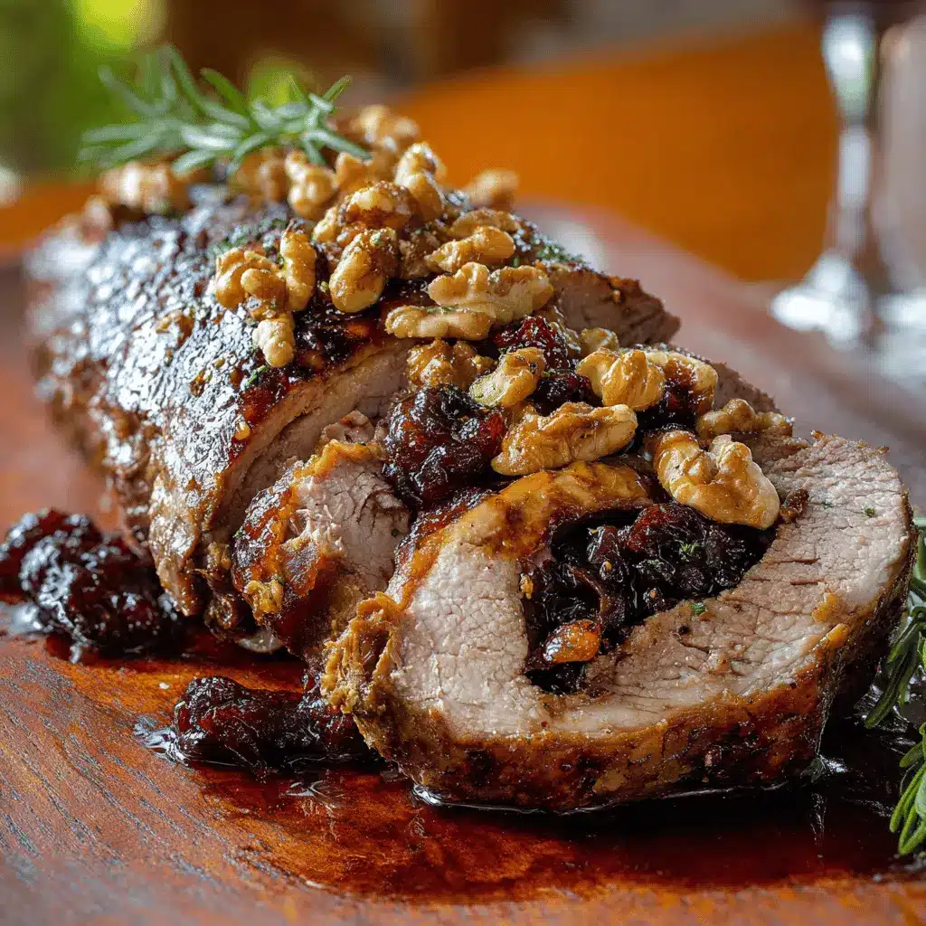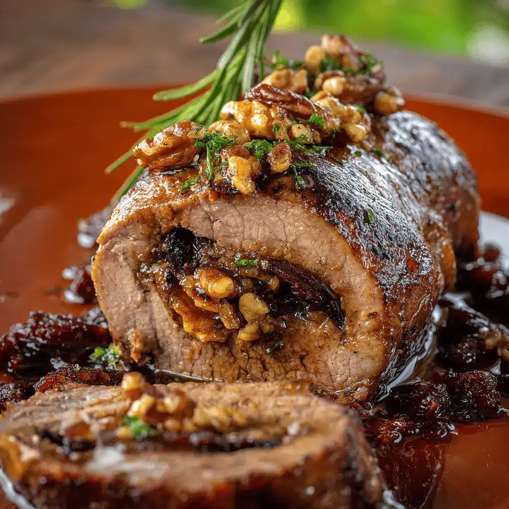 Disfruta de esta exquisita carne de res rellena de ciruelas pasas y nueces, perfecta para una cena especial.