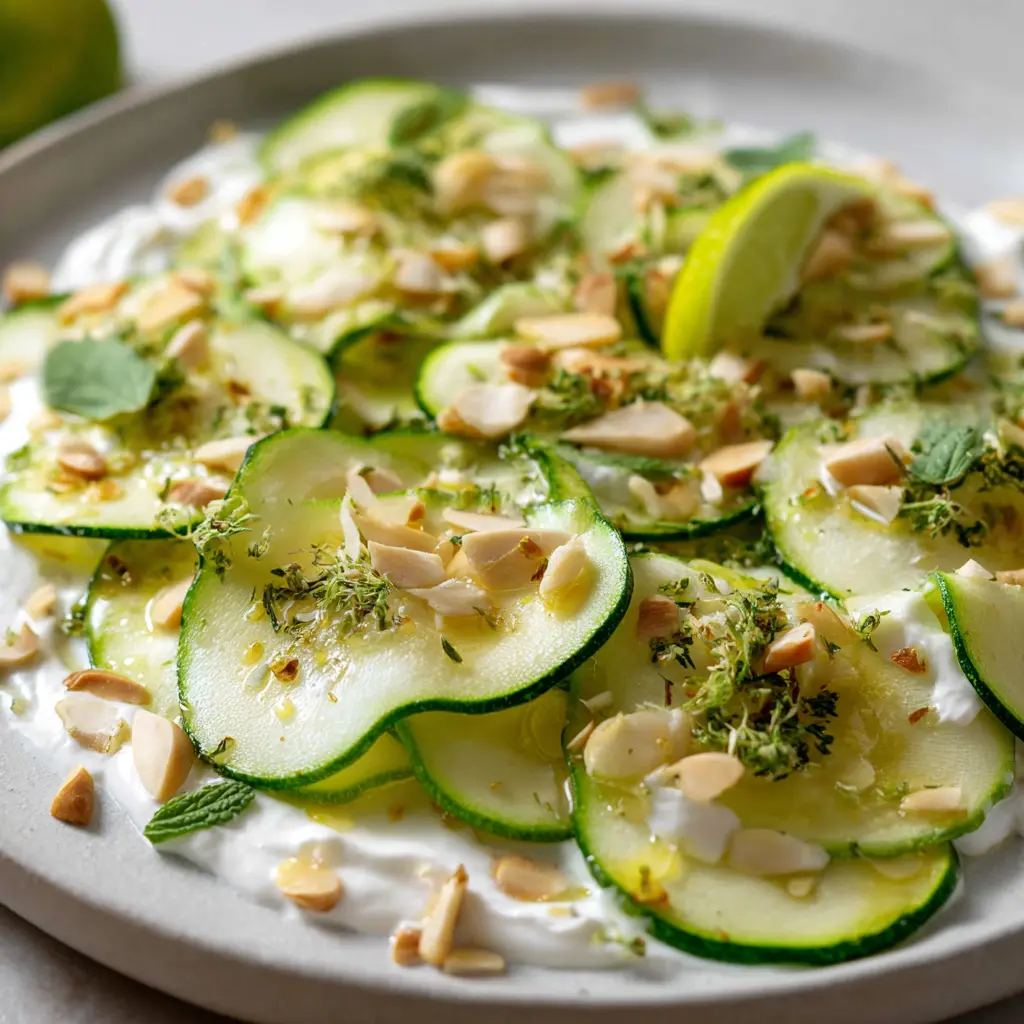 Carpaccio de zucchini con crema de almendras y lima fácil y delicioso
