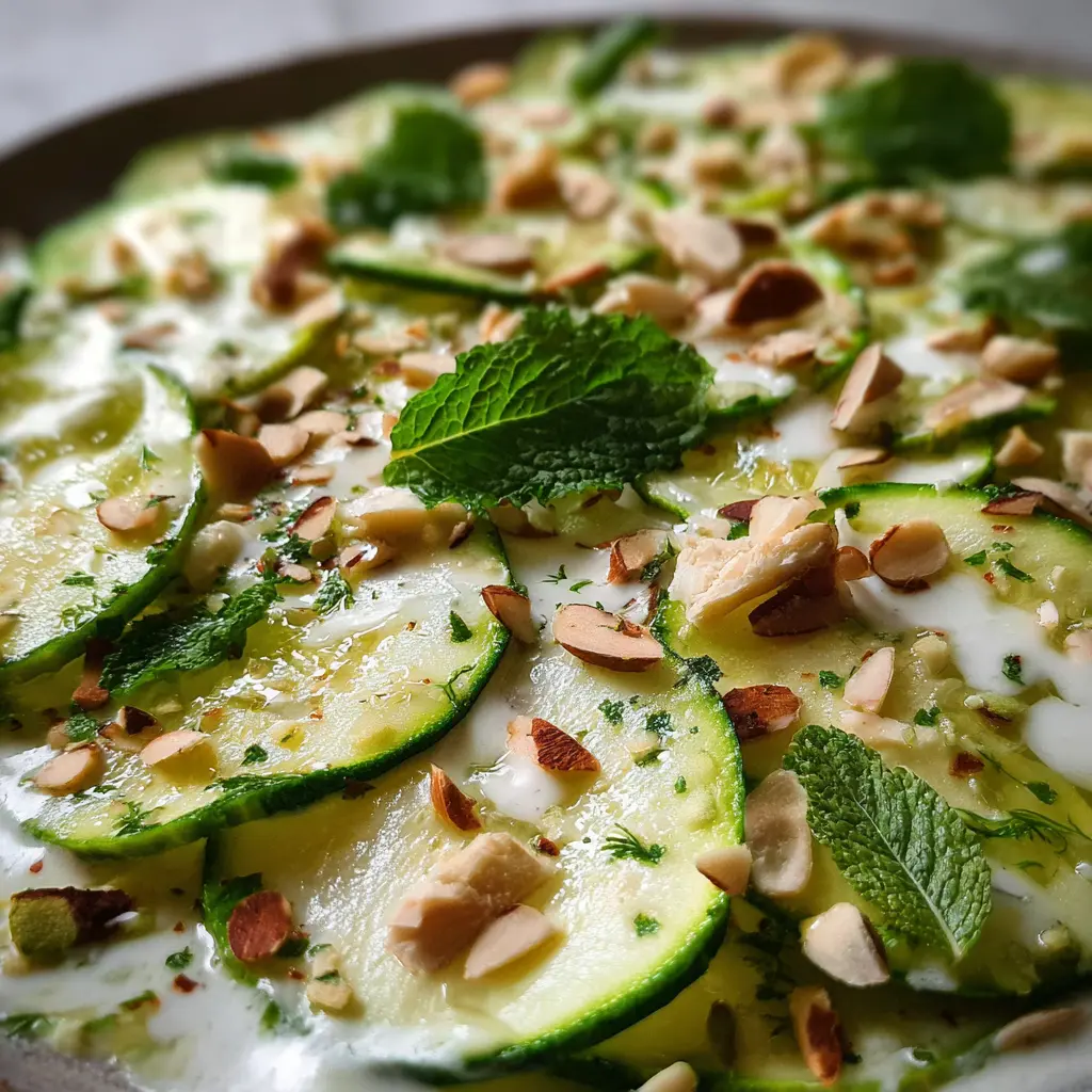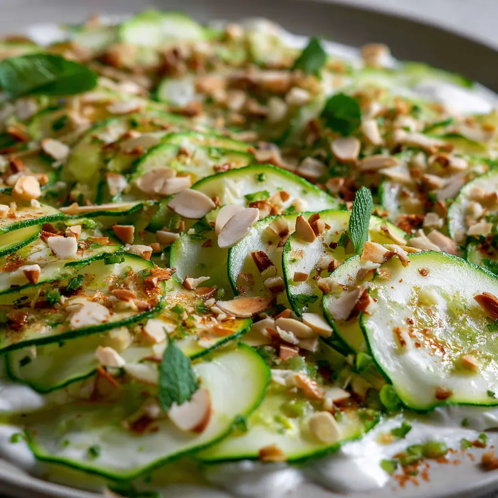 Para permitir que los sabores se integren, es ideal dejar reposar el carpaccio durante unos 10 a 15 minutos a temperatura ambiente. Esto ayuda a que el carpaccio de zucchini absorba todos los sabores de la crema de almendras y la lima.