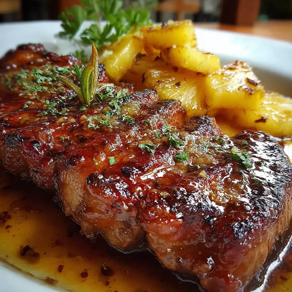 - Servicio: Presenta la chuleta con rodajas de piña fresca para un toque vibrante y atractivo.