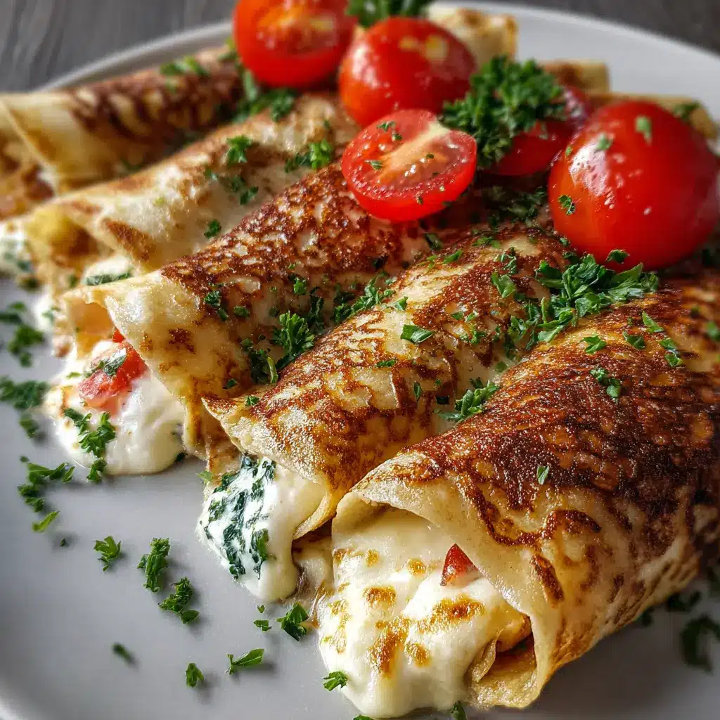 Disfruta de unos deliciosos crepes rellenos de mozzarella que son fáciles de preparar y perfectos para cualquier ocasión.