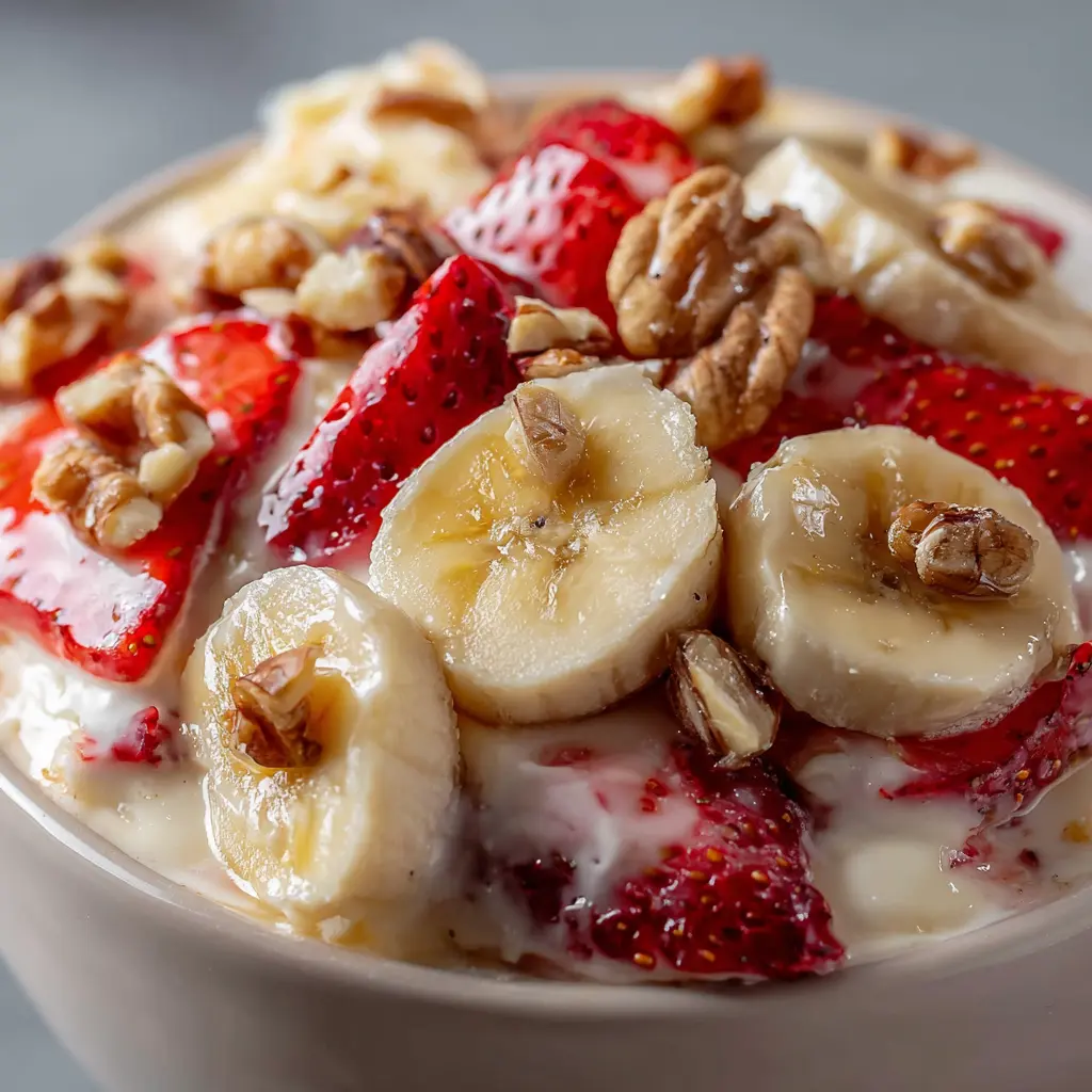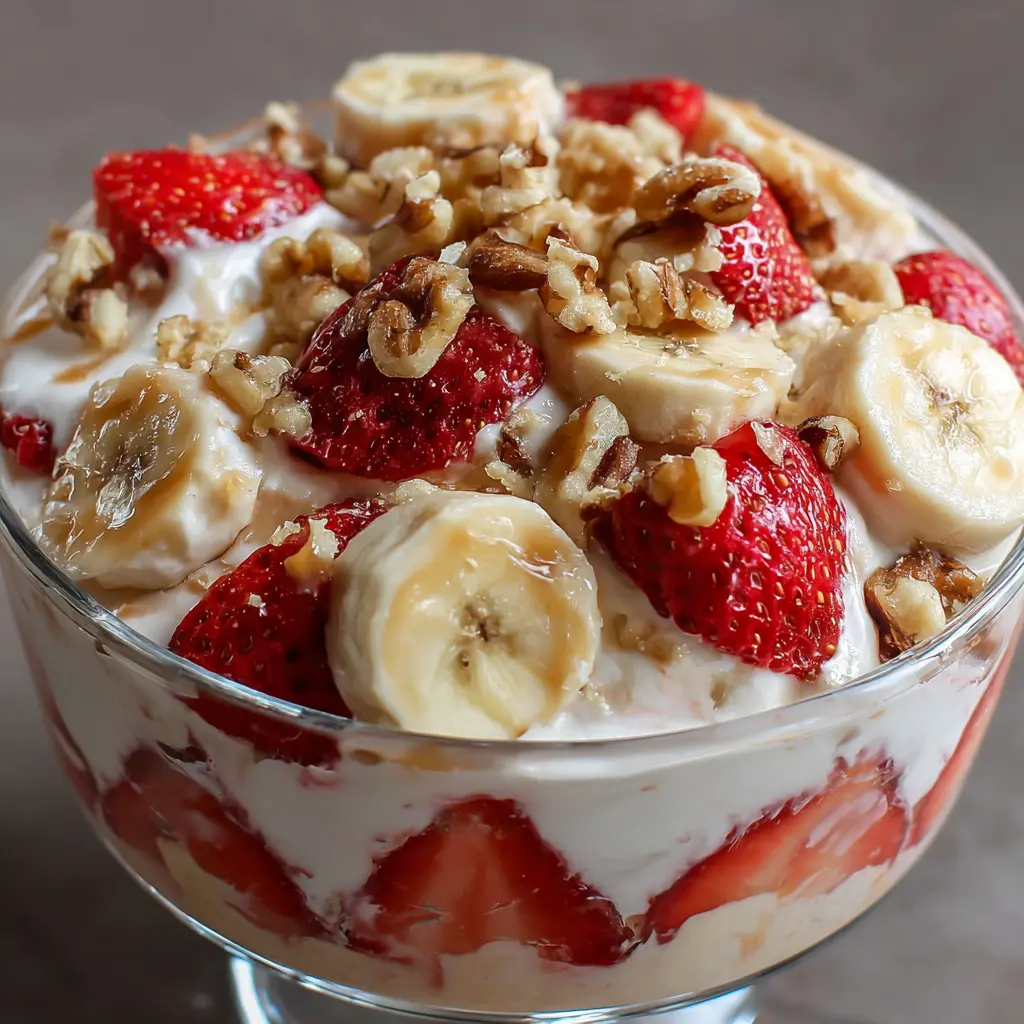 Ensalada cremosa de fresas: delicia fácil con plátano y nueces