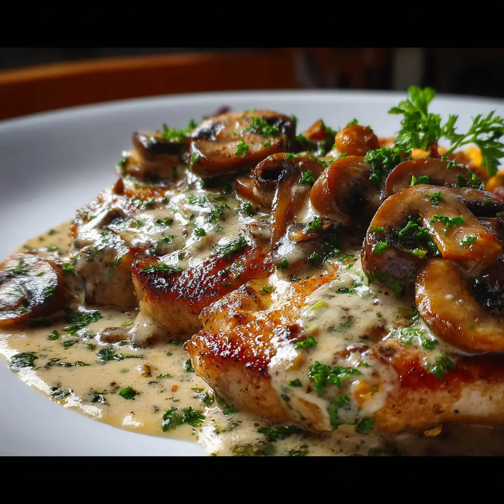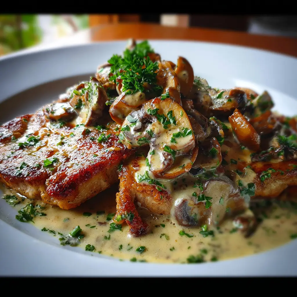 Escalopas de ternera con champiñones y salsa de crema delicioso