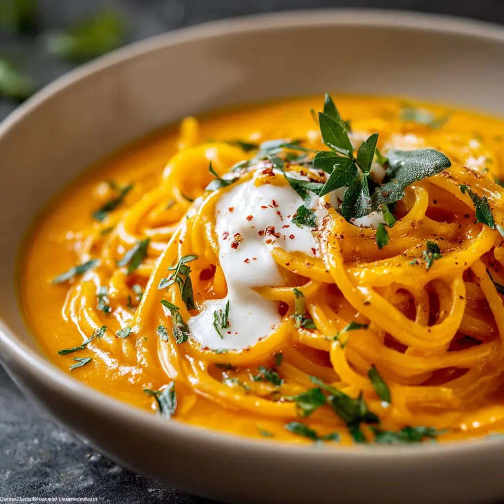 Disfruta de unos espaguetis cremosos y sabrosos con esta receta fácil de crema de calabaza que seguro deleitará a toda la familia.