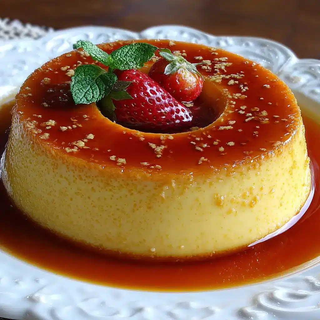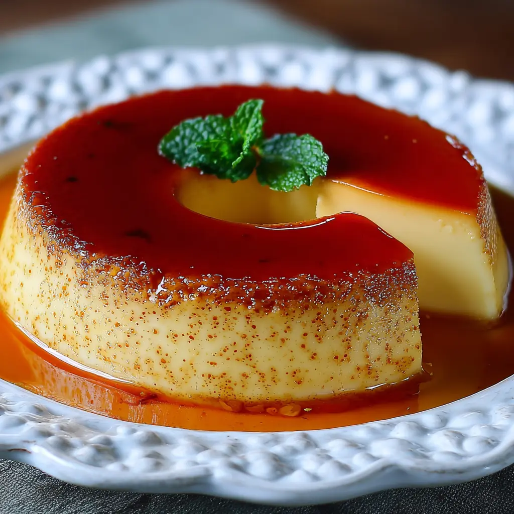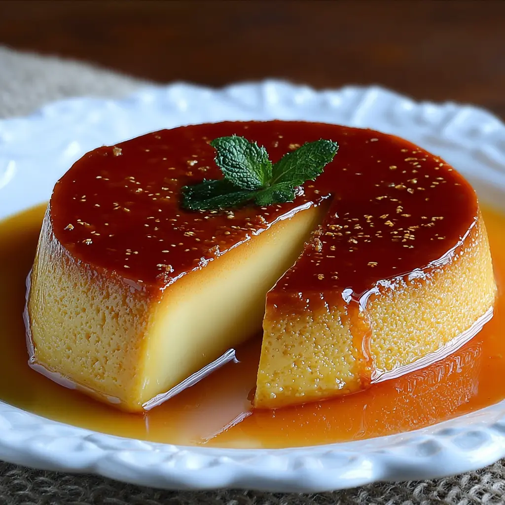 Decoración sencilla: Unas hojas de menta o una pizca de canela en el borde del plato pueden elevar visualmente el flan. ¡A veces, menos es más!