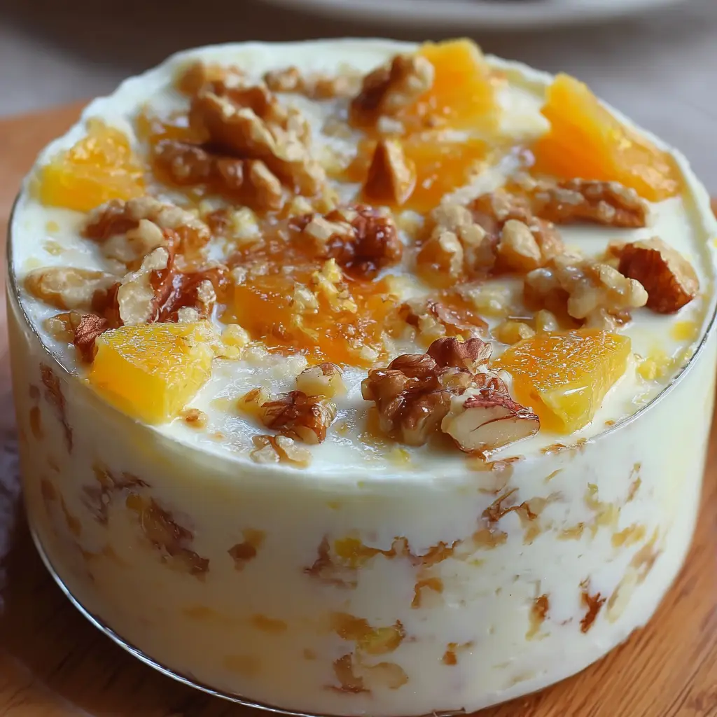 Gelatina de queso crema con zanahoria, piña y nuez deliciosa