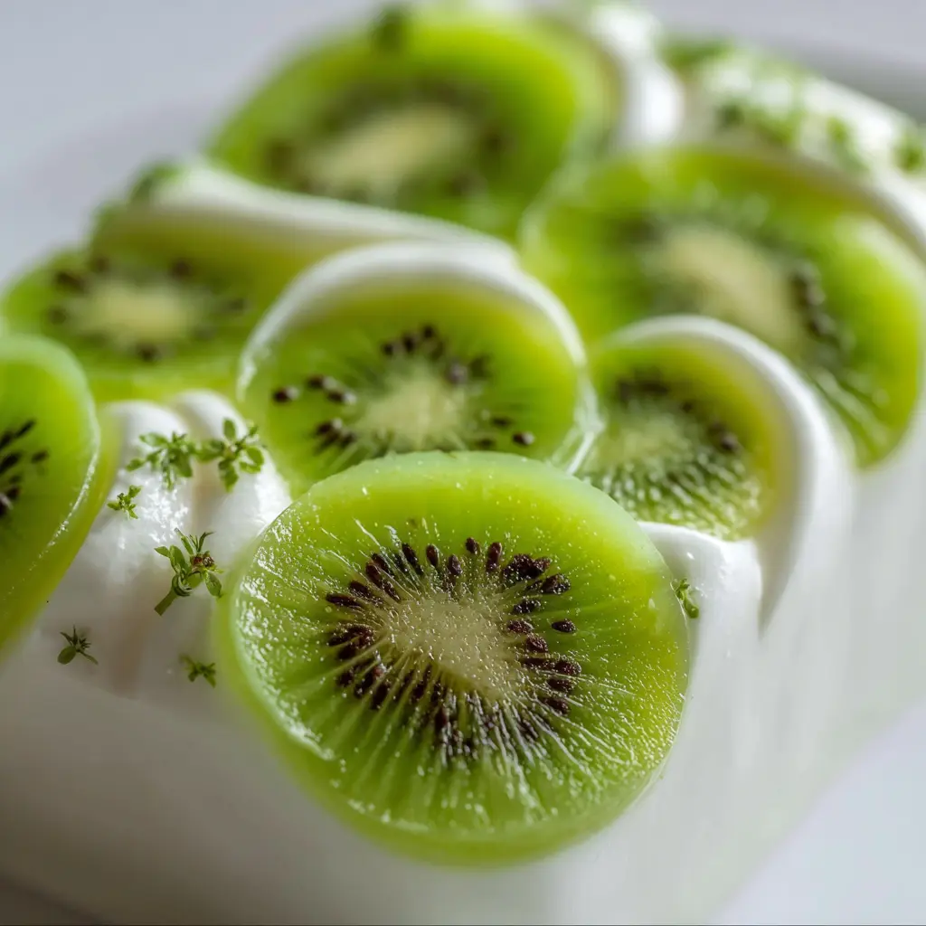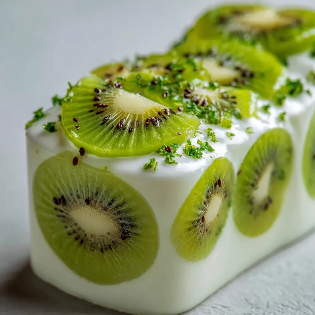 Disfruta de esta refrescante gelatina de yogurt con kiwi, perfecta para un postre ligero y nutritivo.