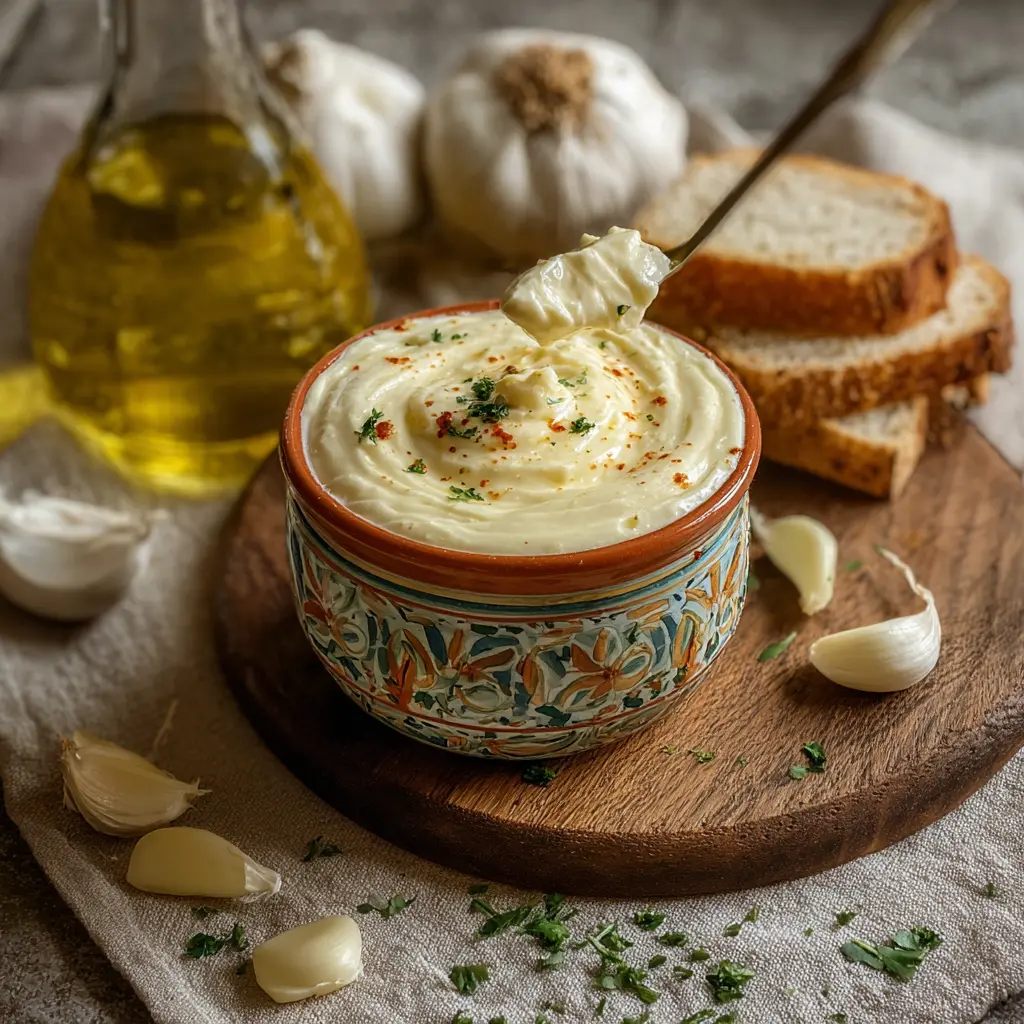 Esta versión es perfecta para aquellos que disfrutan del frescor que aportan las hierbas. Puedes añadir un puñado de perejil, albahaca o incluso cilantro para darle un toque aromático. Simplemente, mezcla los ingredientes de la crema de ajo básica y agrega las hierbas picadas al final.