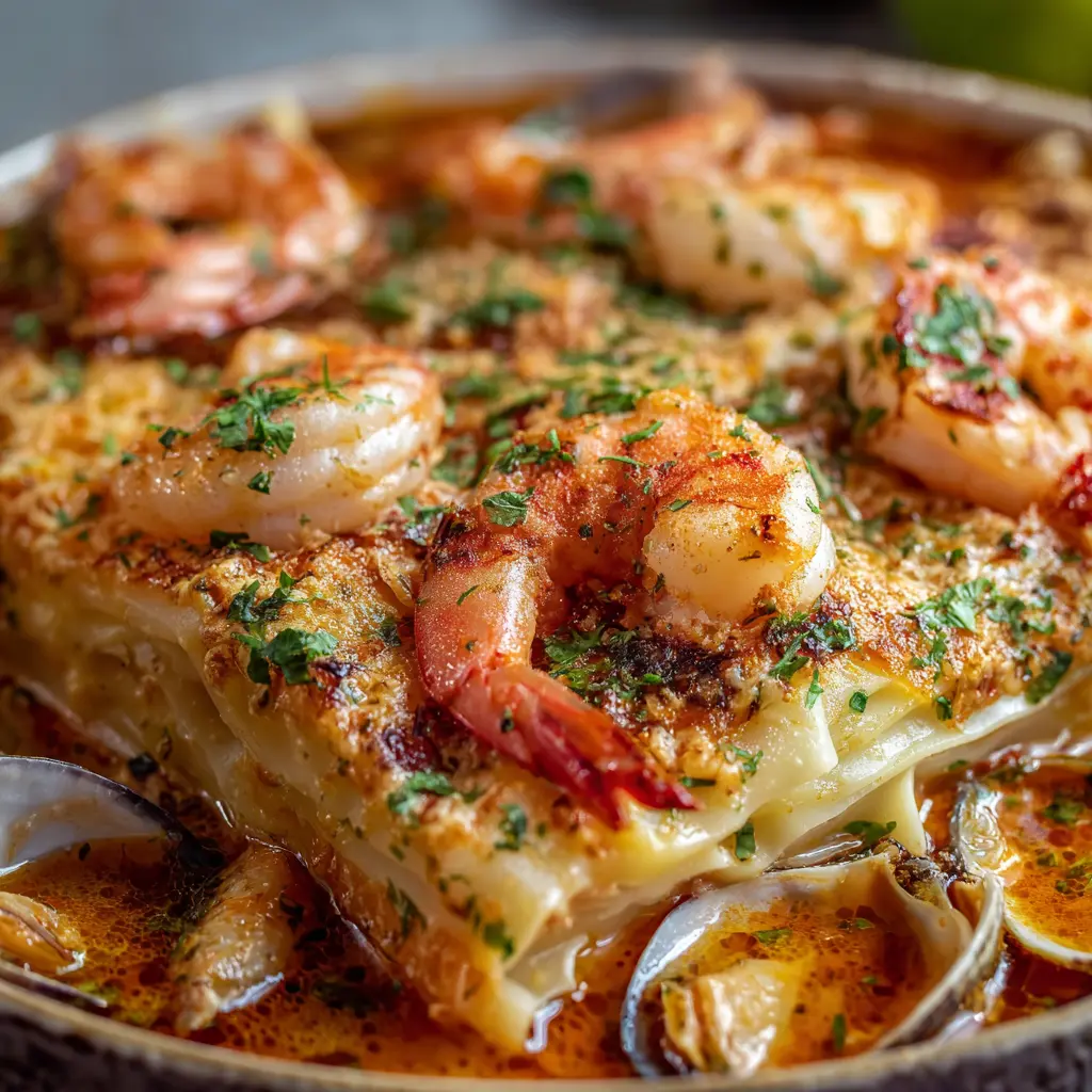 Disfruta de una deliciosa lasaña de mariscos que es fácil de preparar y perfecta para disfrutar en la comodidad de tu hogar.