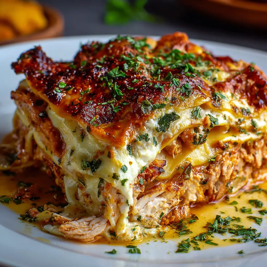 ¡Listo para disfrutar! Servir una porción de esta deliciosa lasaña de pollo no solo es un festín para el paladar, sino también un gran logro en la cocina. Perfecta para una cena entre amigos o para un día especial en familia.