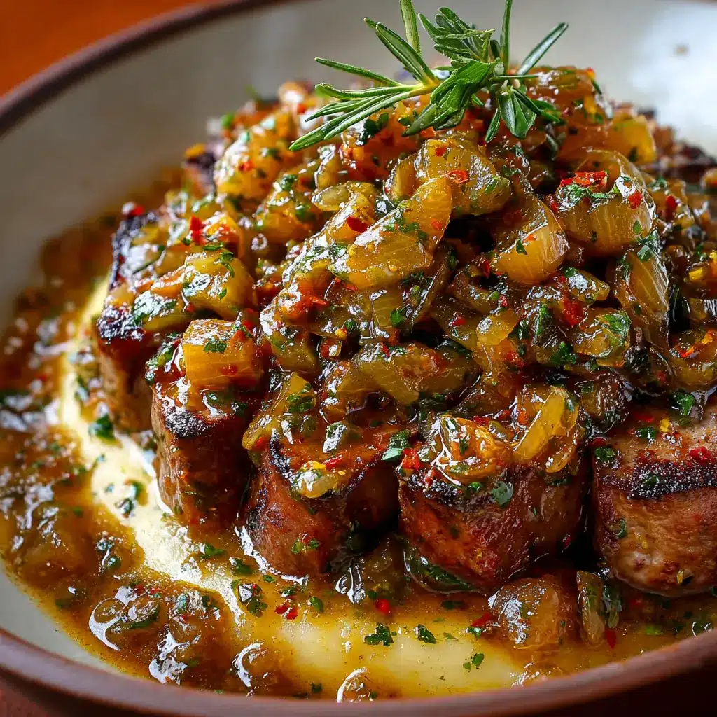 Introducción al Lomo con Salsa de Cebollitas Caramelizadas