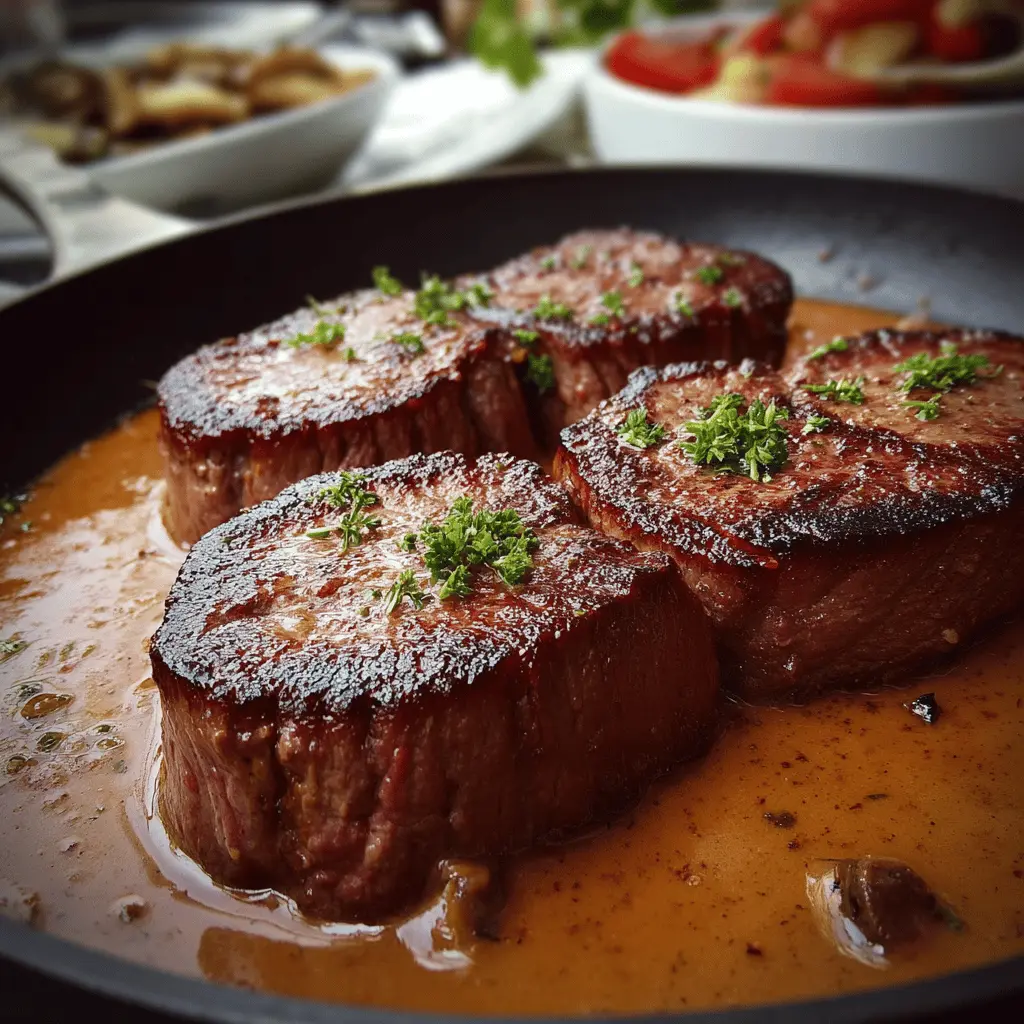 - Sellar: Coloca los medallones de lomo en la sartén caliente, asegurándote de no abarrotar la sartén. Deben tener suficiente espacio para dorarse correctamente.