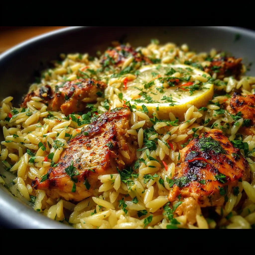 Una receta sencilla y deliciosa que combina la textura del orzo con el sabor fresco del limón y la jugosidad del pollo.