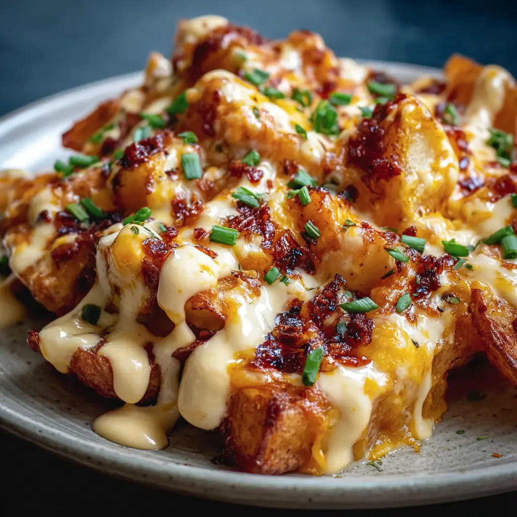 Esta receta de papas con queso es perfecta para los amantes de los sabores reconfortantes. El tocino de pavo añade un toque ahumado y delicioso que combina perfectamente con el queso derretido.