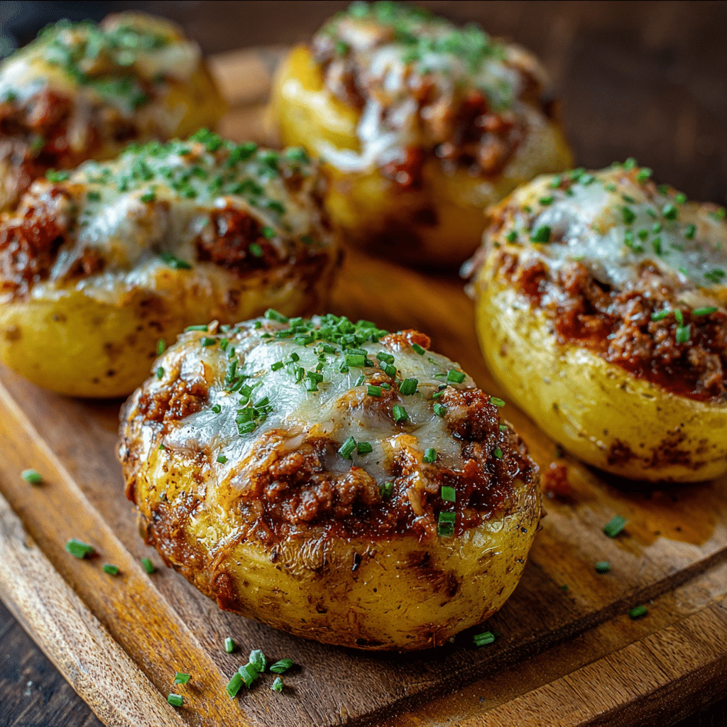 Deléitate con estas exquisitas papas rellenas de carne de res y queso fundido, perfectas para cualquier ocasión.