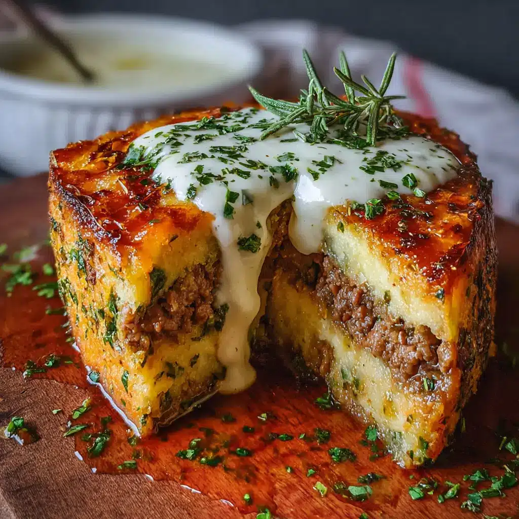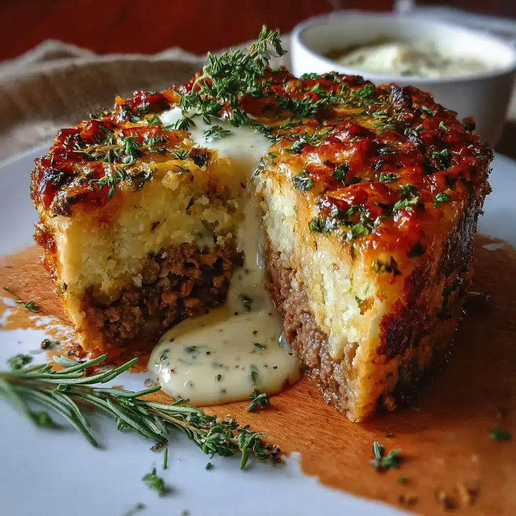 Pastel de Carne de Res con Costra de Hierbas y Salsa Blanca Deliciosa