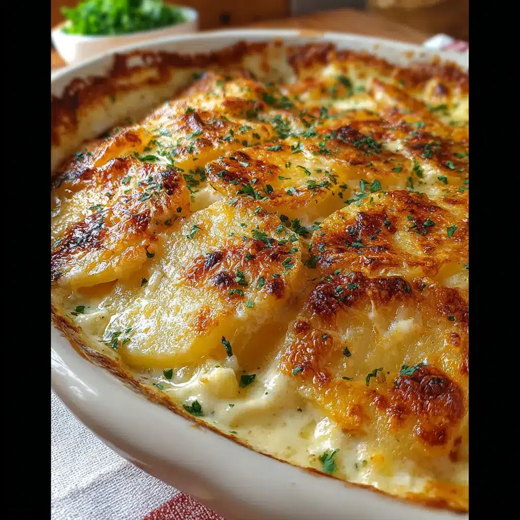 Disfruta de unas deliciosas patatas gratinadas a la crema, perfectas para acompañar pollo y pavo. Este plato es ideal para cualquier ocasión.