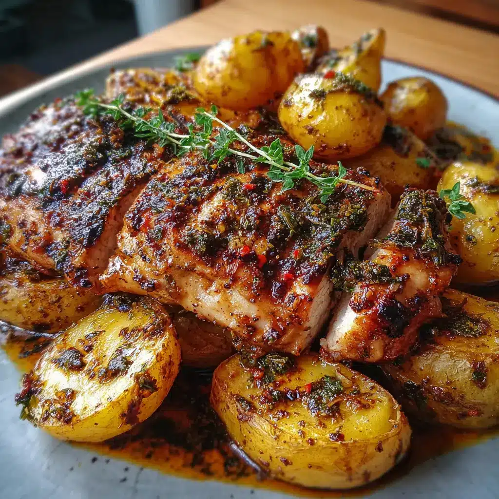 Cuando el pollo y las papas estén dorados y tiernos, retíralos del horno y déjalos reposar durante 5 minutos antes de servir. Este paso permite que los jugos del pollo se redistribuyan, haciendo que cada bocado sea jugoso y lleno de sabor.