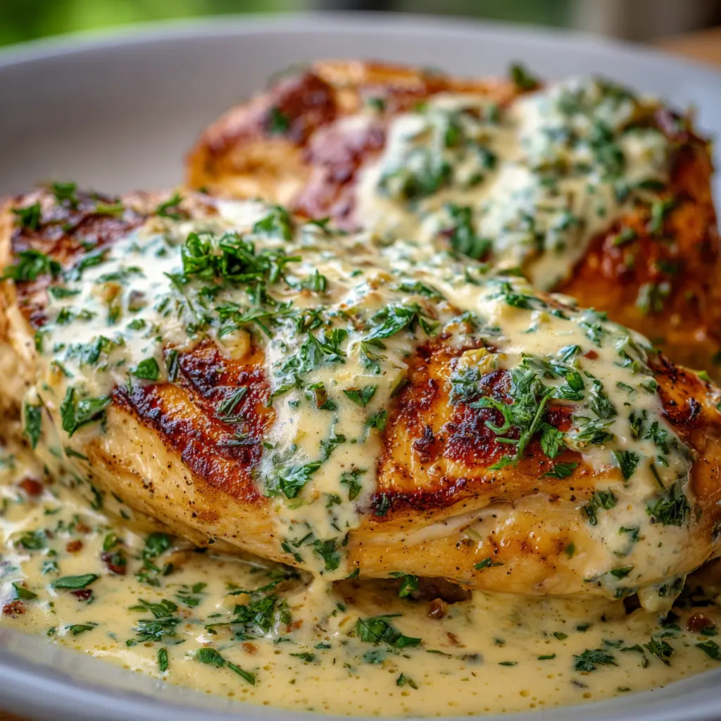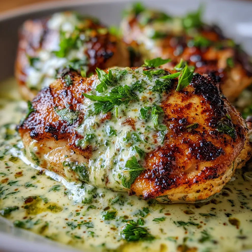Rocía la salsa: Añade generosamente la salsa de crema de cilantro sobre el pollo. La presentación también importa, así que no dudes en ser creativo.