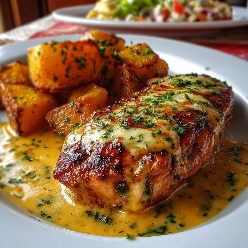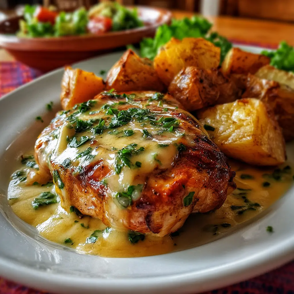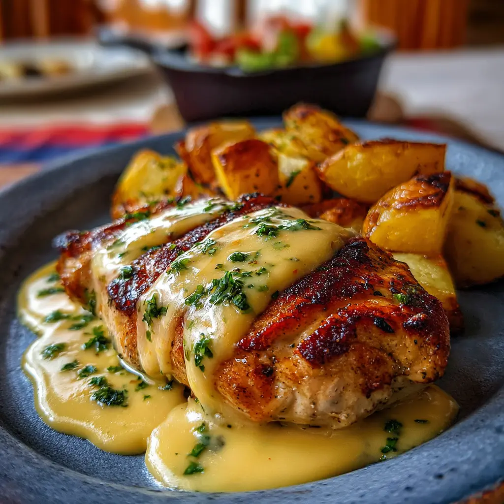 Pechuga de Pollo con Salsa de Queso y Patatas Asadas Deliciosas
