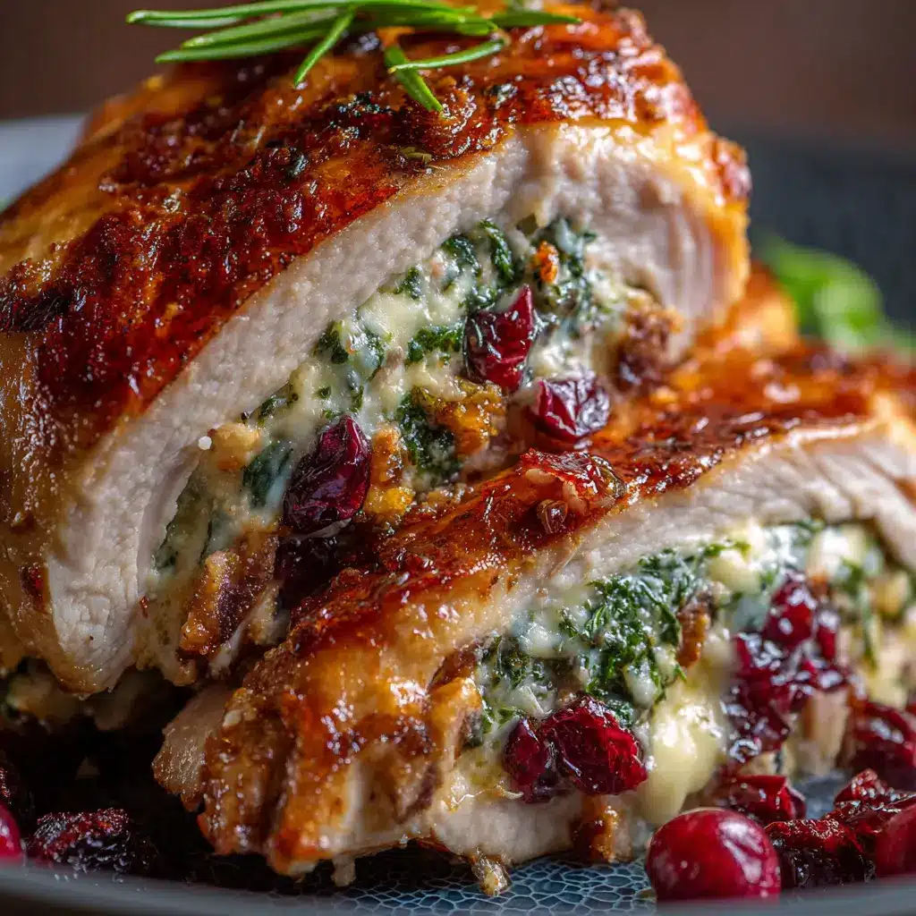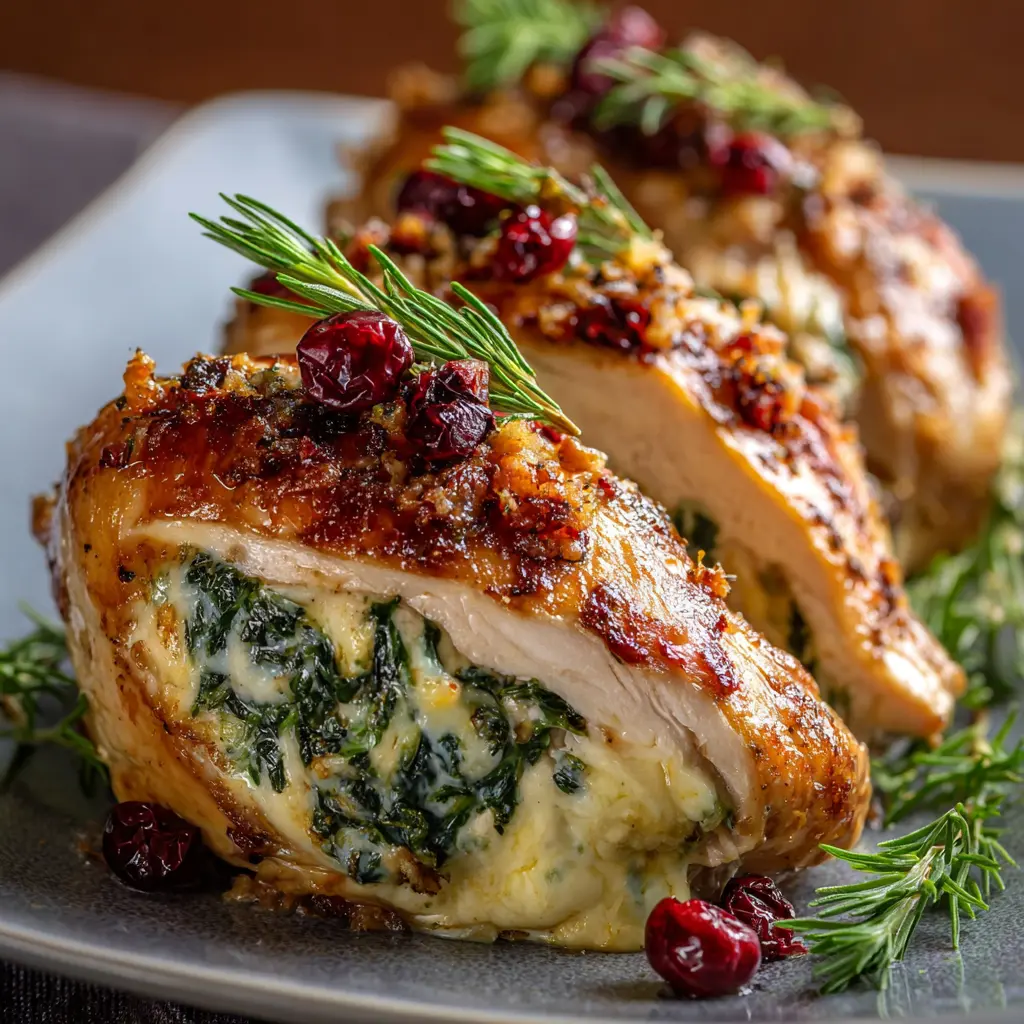 Una receta deliciosa y festiva que combina pechugas de pollo rellenas de queso, espinaca y arándano, perfecta para las celebraciones navideñas.