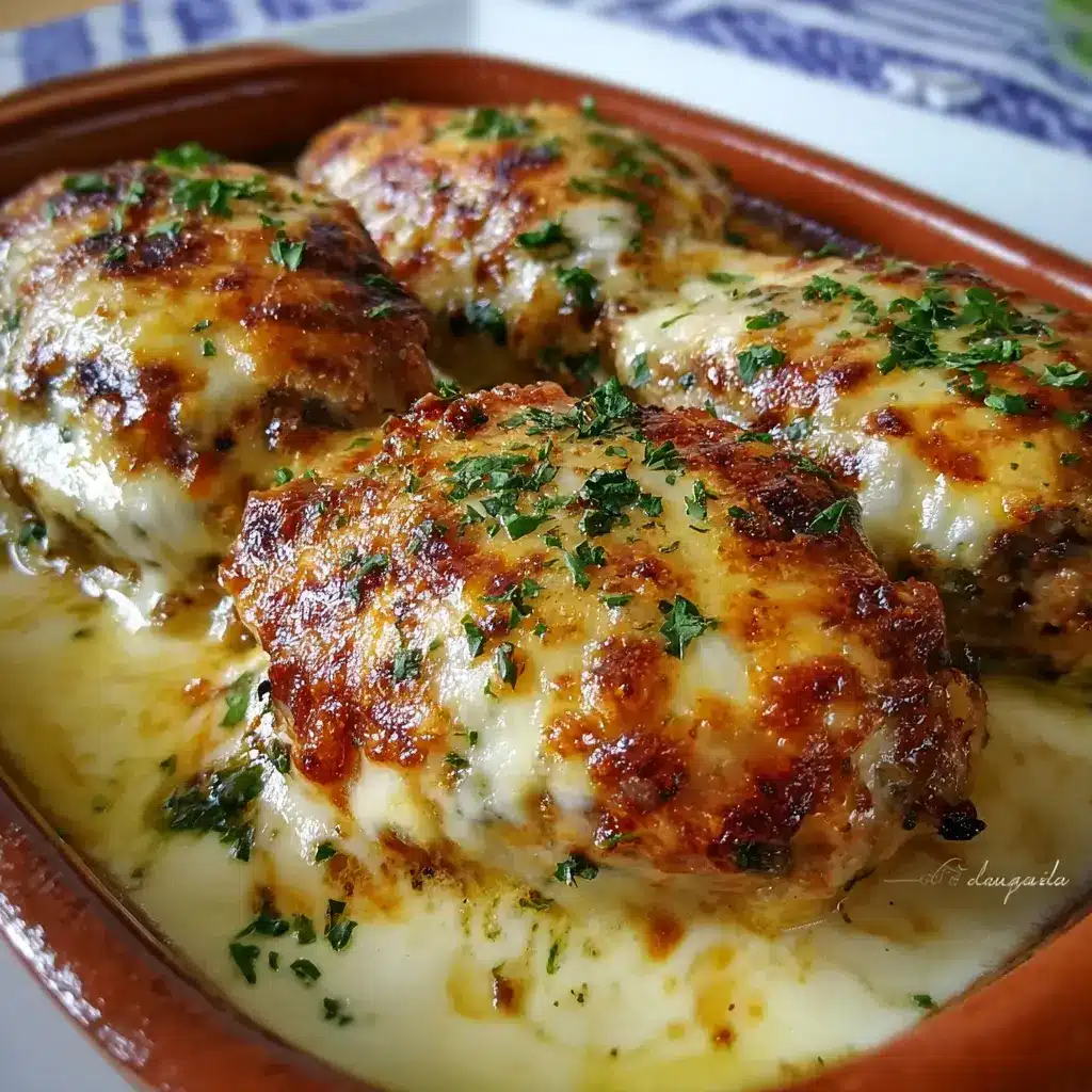 El resultado será absolutamente espectacular: pechugas rellenas gratinadas que no solo son agradables a la vista, sino especialmente sabrosas. Esta receta es perfecta para disfrutar con una guarnición de verduras asadas o una ensalada fresca. Así que ya lo sabes: este plato impresionará a tus invitados, ¡y quizás incluso te pida que lo repitas para la próxima cena!