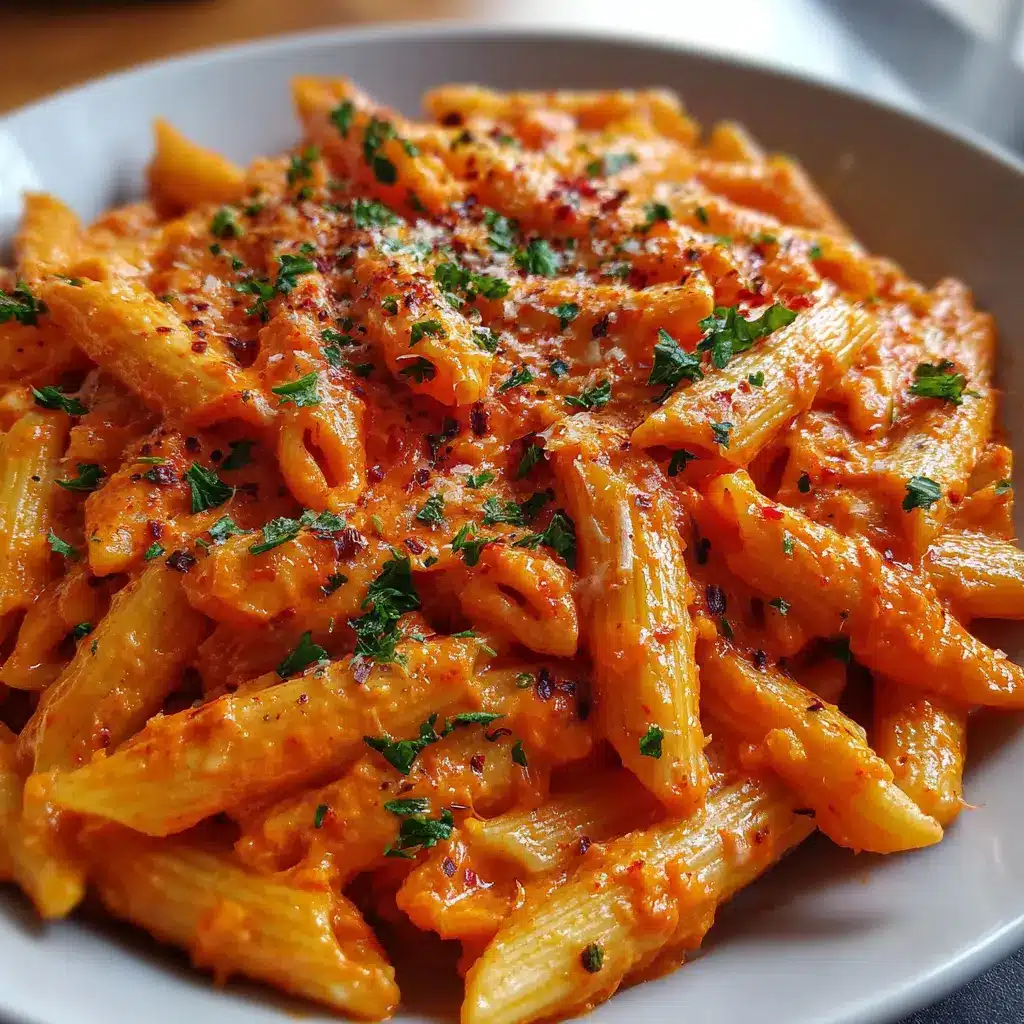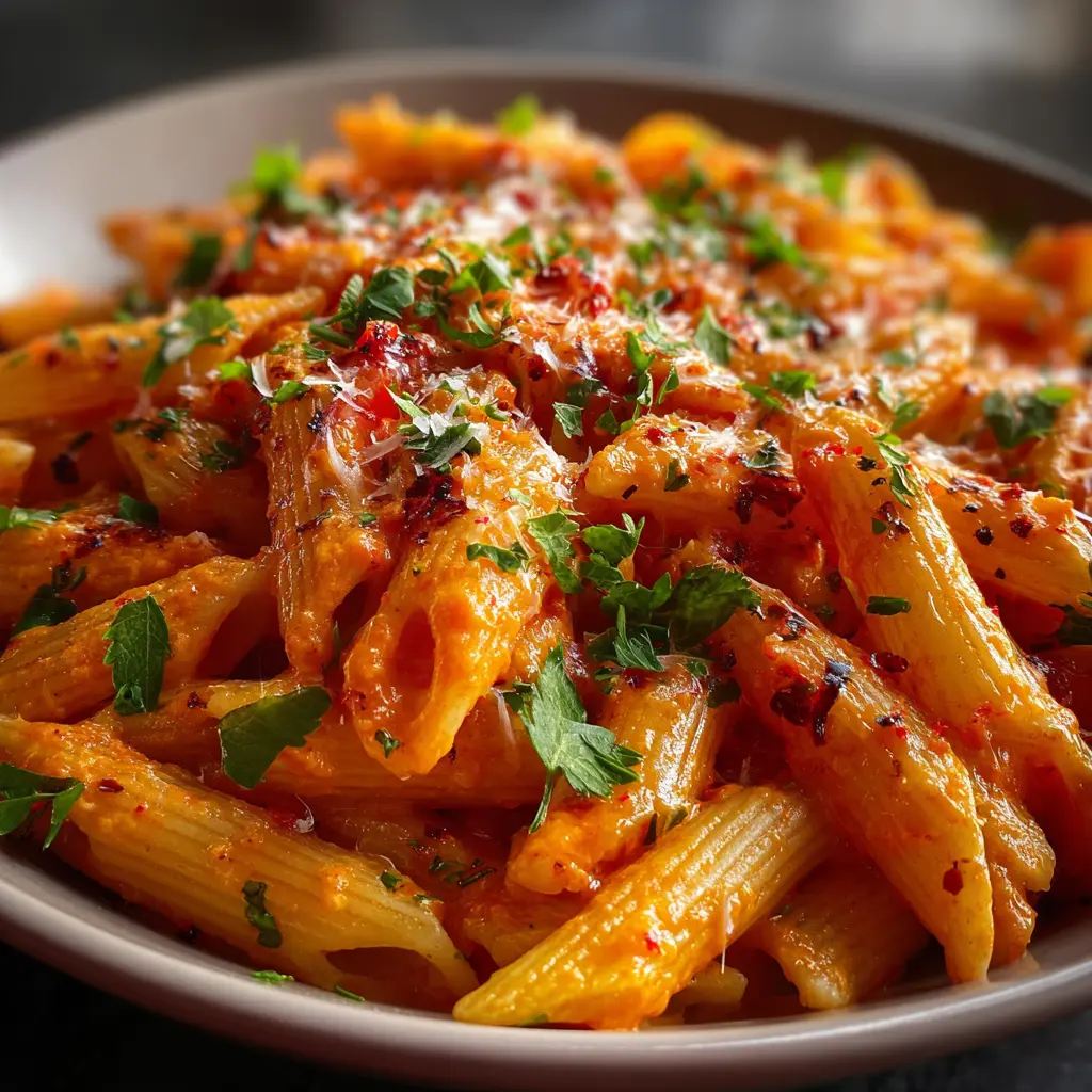 - Agrega los penne rigate y mezcla hasta que estén bien cubiertos con la salsa.