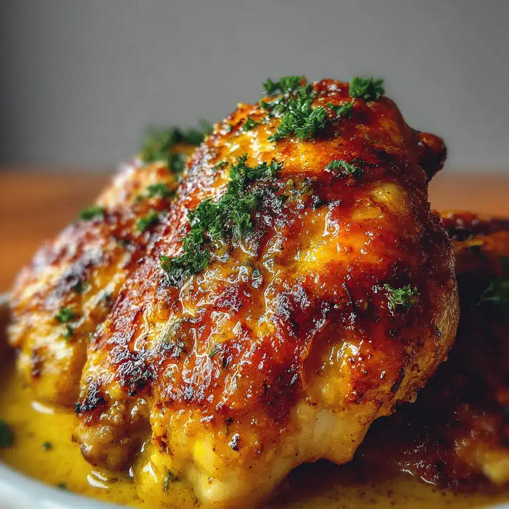 Como toque final, decora tu plato con perejil fresco picado para un color vibrante y frescura adicional. Ahora tu pollo a la mostaza está listo para ser disfrutado.