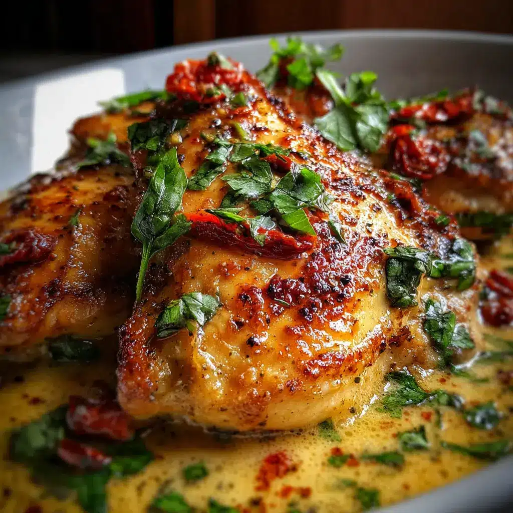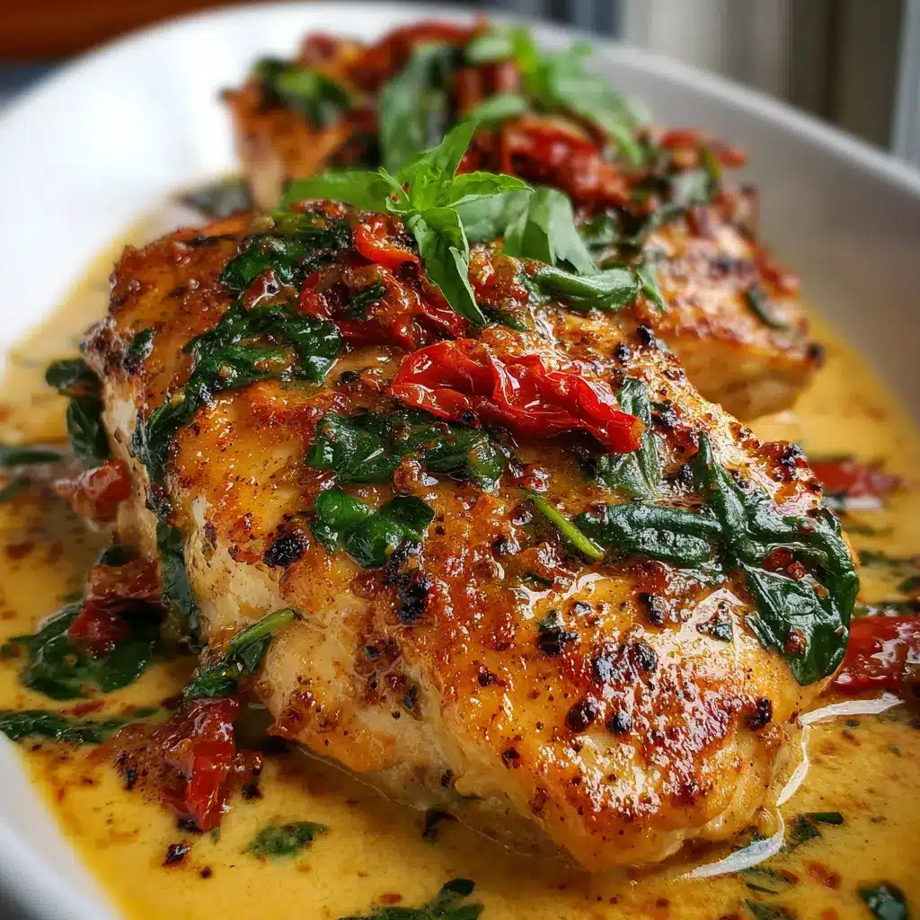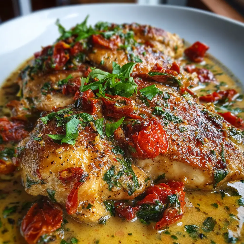 Finalmente, devuelves el pollo a la sartén. Asegúrate de cubrirlo bien con la salsa que has creado. Cocina el conjunto a fuego lento durante unos 10-15 minutos. Esto permitirá que el pollo absorba todos esos sabrosos sabores. Cuando esté todo listo, sirve tu Pollo a la Toscana caliente y disfruta con una guarnición de tu elección, como arroz o pasta.