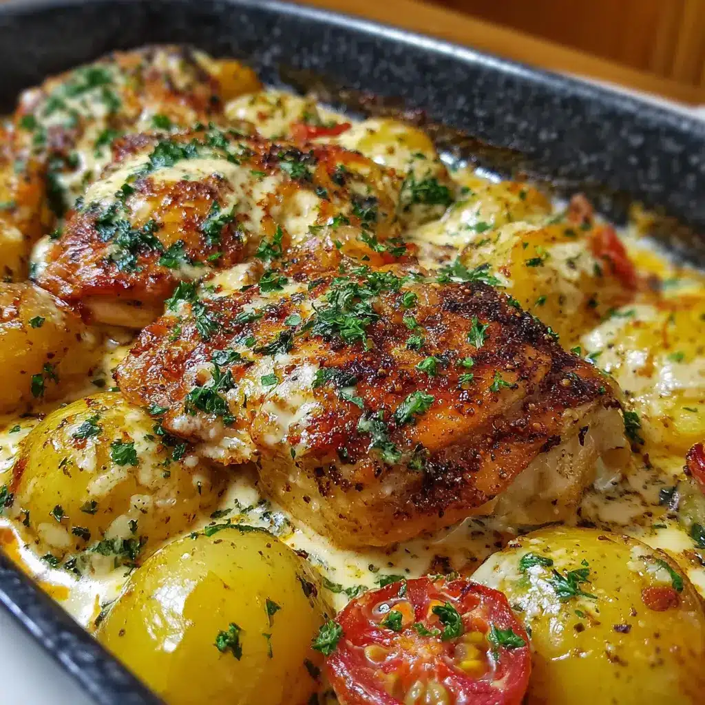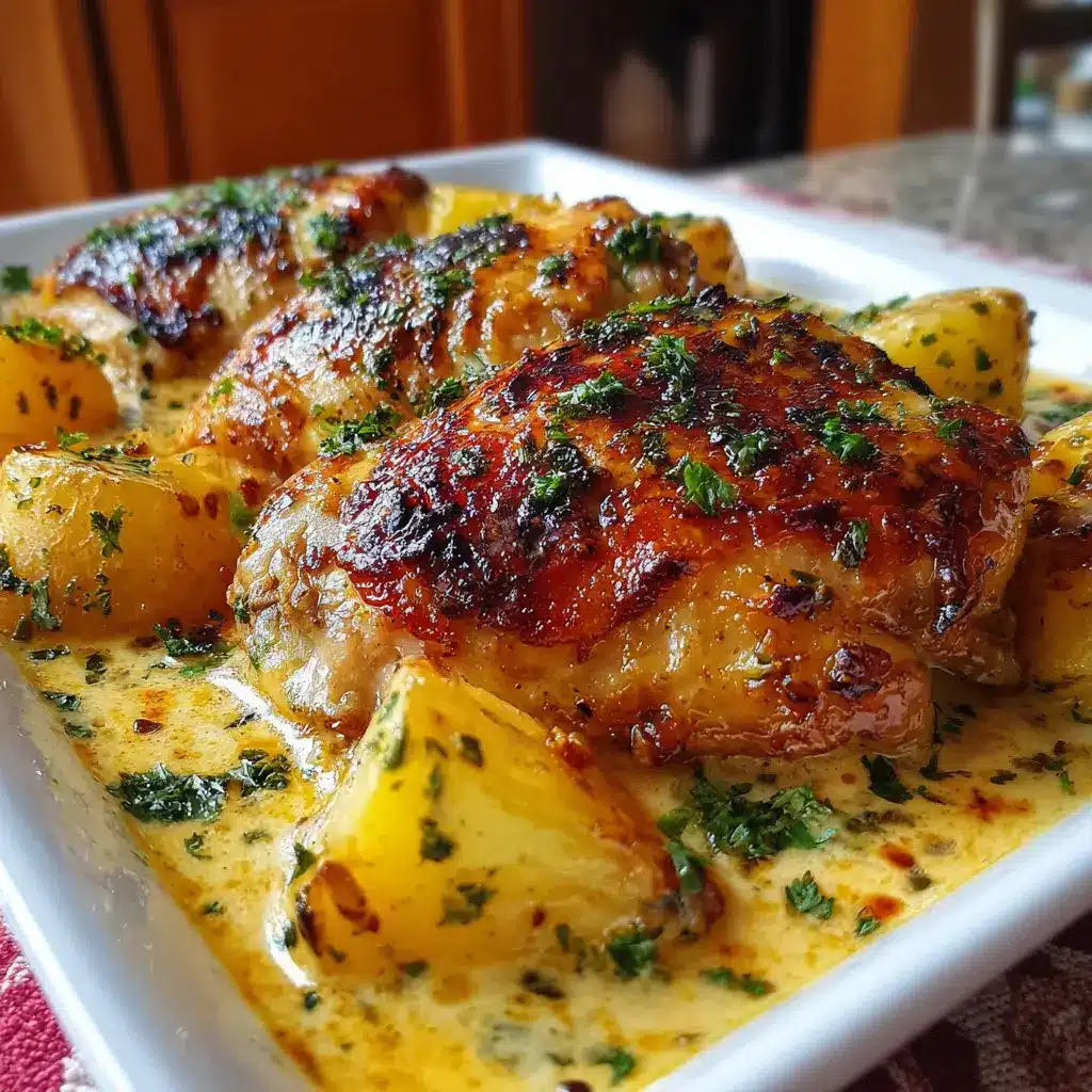 Pollo al Horno con Papas en Salsa Cremosa de Queso Delicioso
