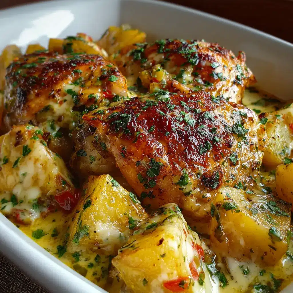 Pollo al Horno con Papas en Salsa de Queso: Receta Deliciosa y Fácil