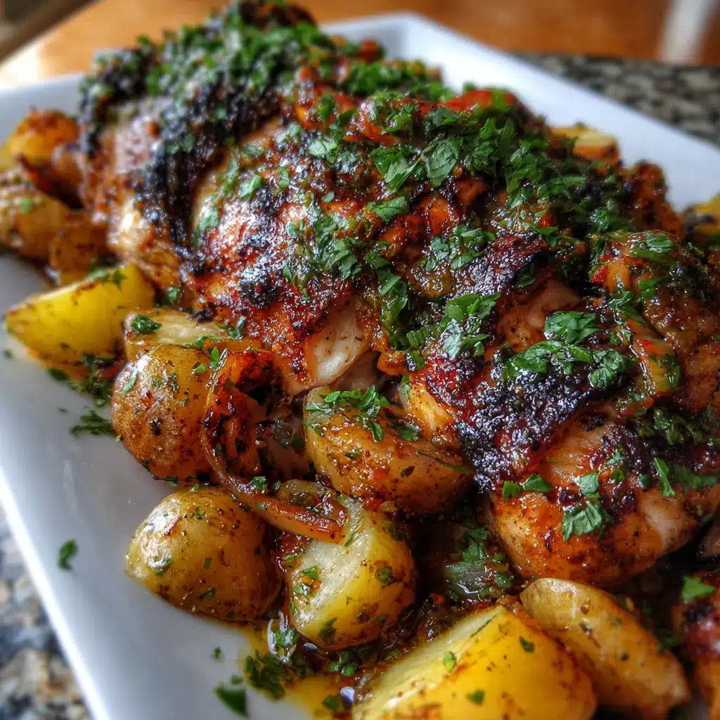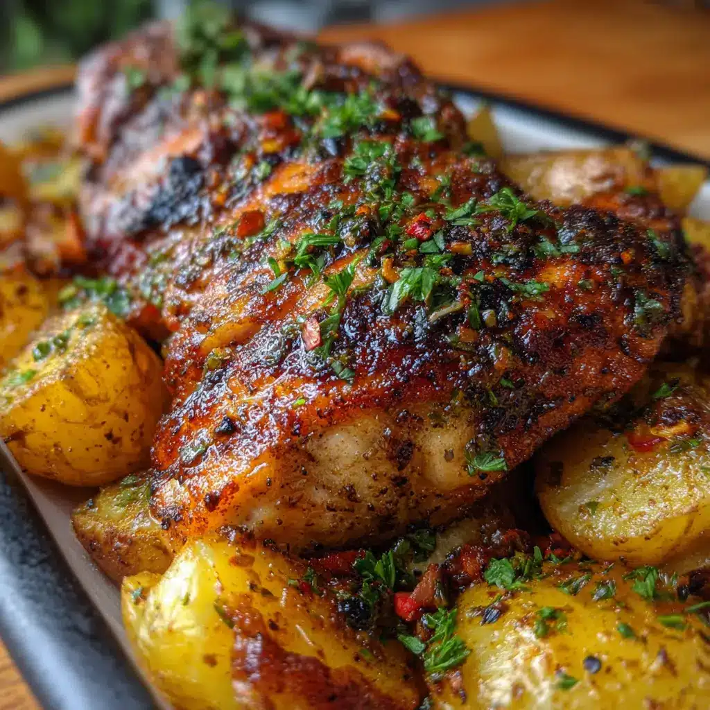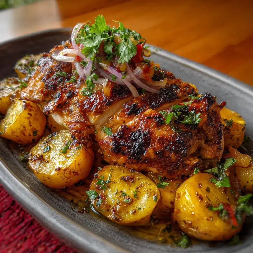 Facilidad de Preparación: Esta receta no requiere de habilidades culinarias complicadas. Si tienes un horno y un poco de tiempo, puedes crear una comida deliciosa y saludable. Solo necesitas aliñar el pollo, preparar las papas y dejar que el horno haga su magia. Este método permite que los sabores se intensifiquen, y la textura del pollo queda perfectamente jugosa con la piel crujiente.