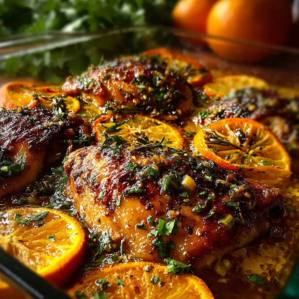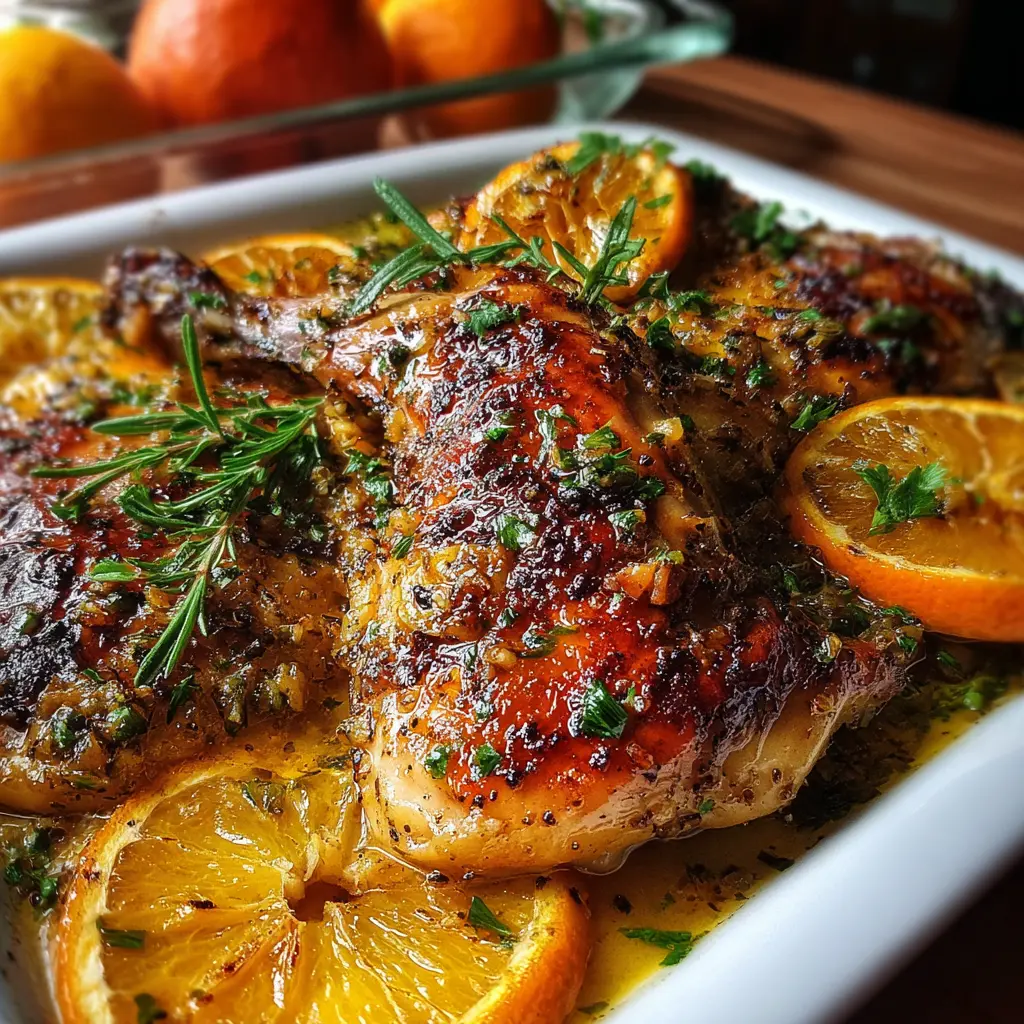 Pollo asado a la naranja y hierbas frescas