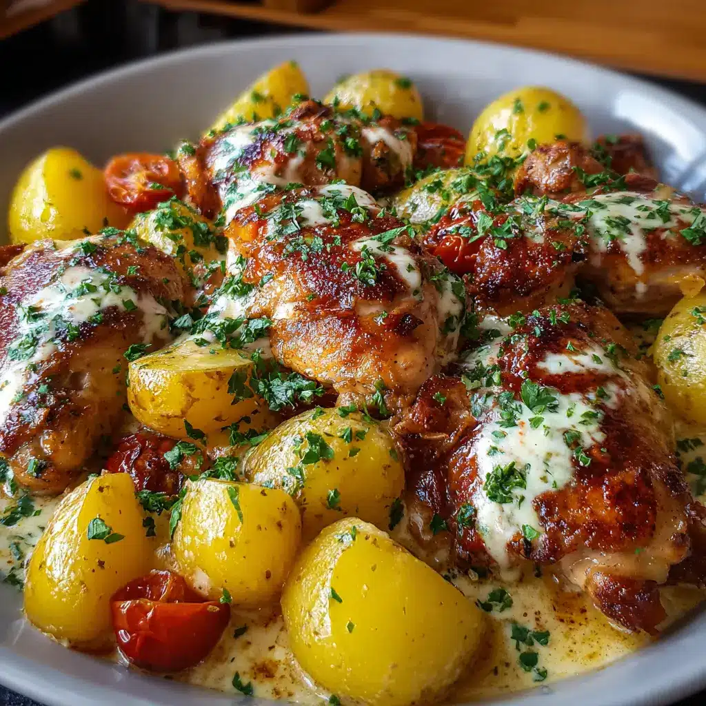Otra variación que te encantará es el Pollo con Patatas en Salsa Cremosa de Queso acompañado de salsa de mostaza. Para preparar la salsa, mezcla mostaza Dijon con crema y un poco de caldo de pollo. El resultado es una combinación de sabores agridulces que anima incluso los días más fríos. Rocea la salsa sobre tus patatas y pollo antes de hornear para que se impregnen de ese sabor único. ¡Una idea perfecta para una cena acogedora!
