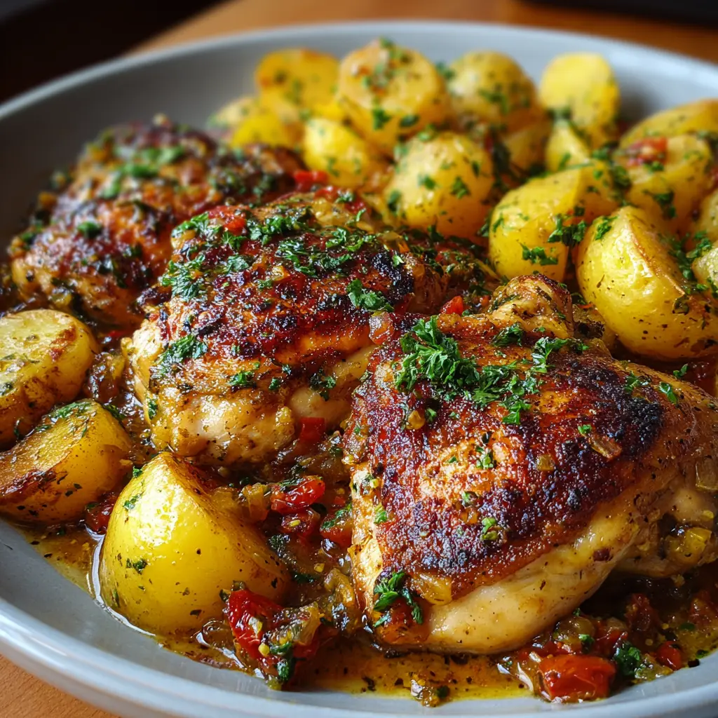 Una deliciosa receta de pollo con salsa y patatas que es fácil de preparar y encantará a todos en la mesa.