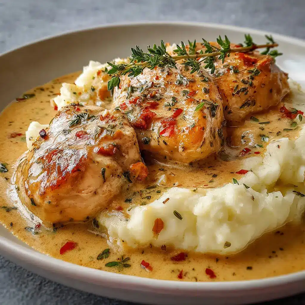 Esta es la parte que realmente hace que tu pollo cremoso con puré de patatas al ajo sea irresistible: