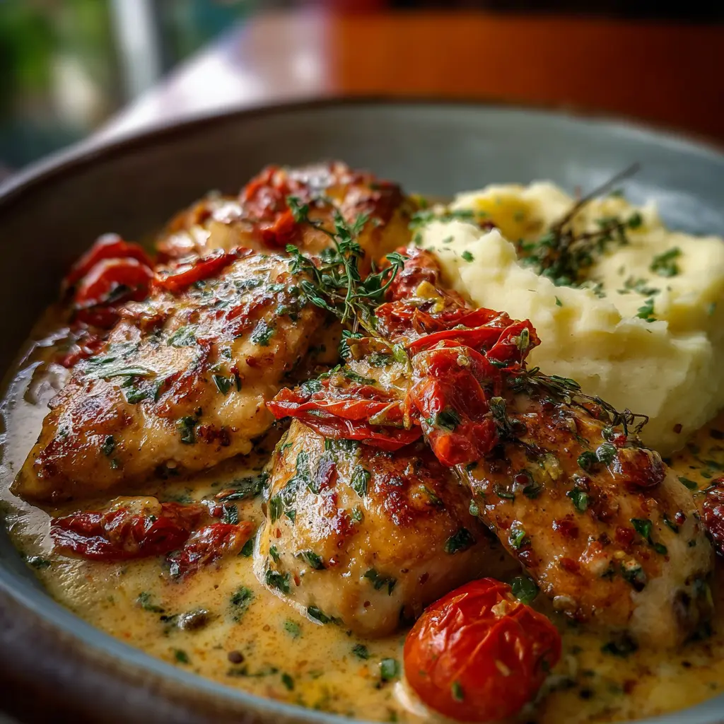 Pollo Cremoso con Tomates Secos: Receta Fácil y Casera de Puré de Papas