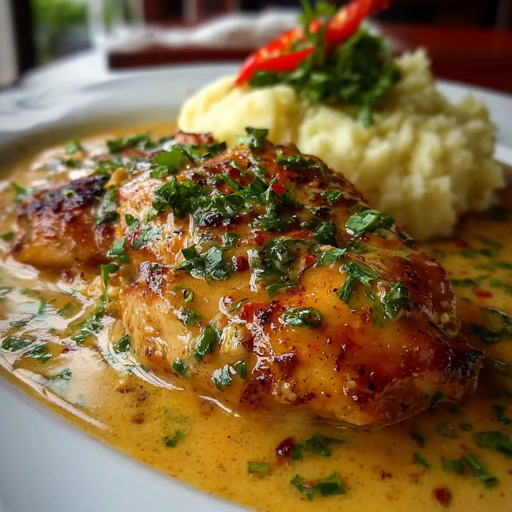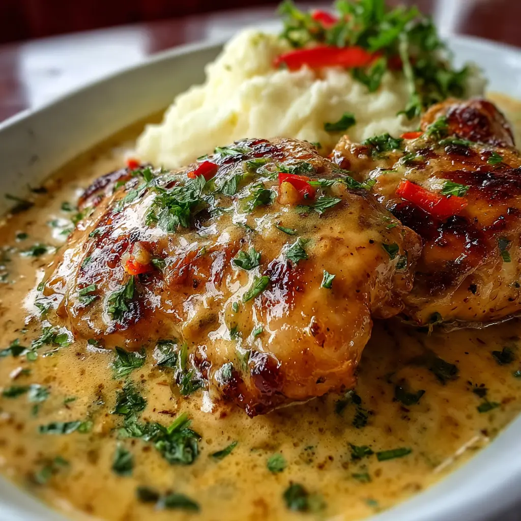 Disfruta de un delicioso Pollo en Salsa Cremosa de Ajo servido con un suave puré de patatas. Esta receta es fácil de seguir y perfecta para una cena especial o un almuerzo reconfortante.