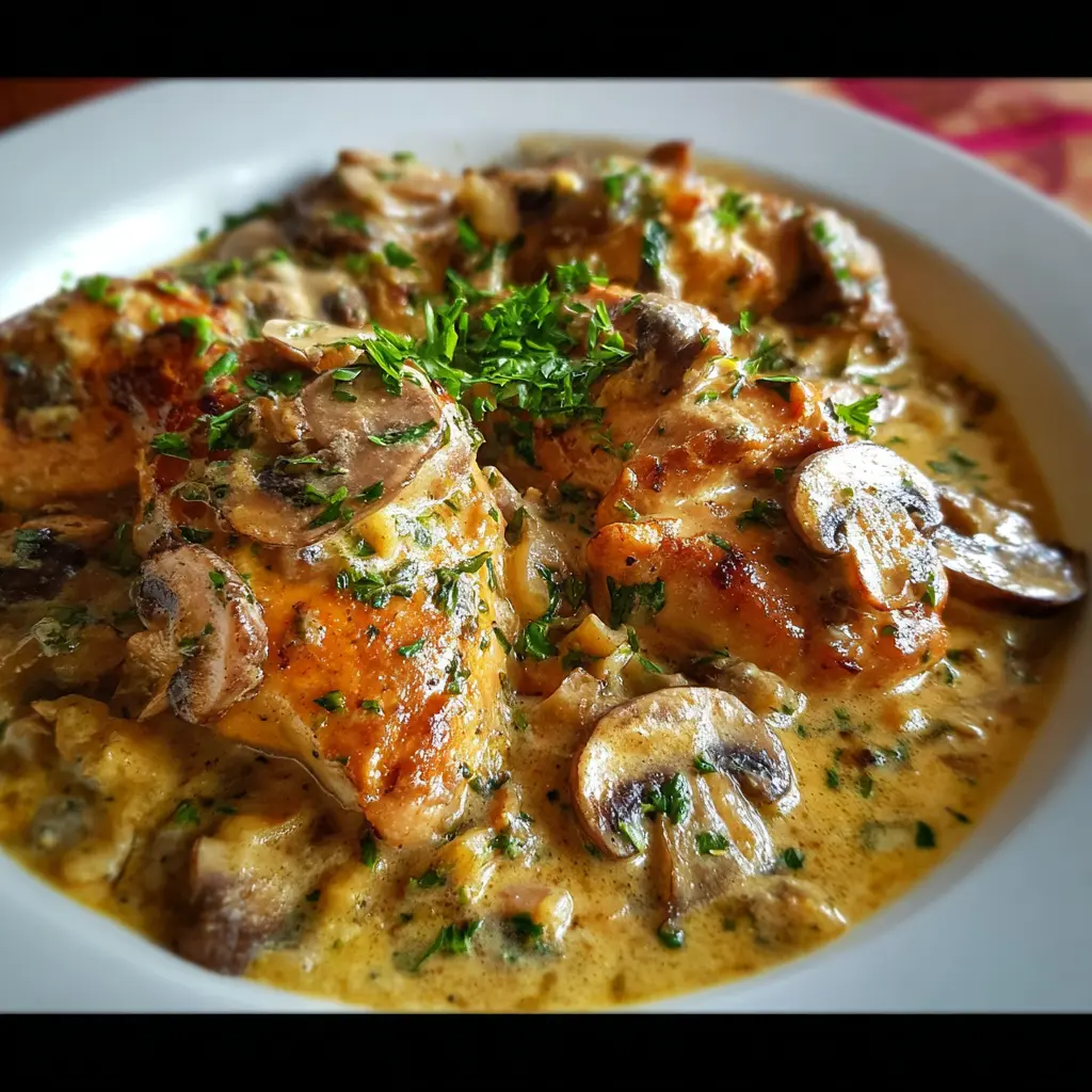 Delicioso pollo en una salsa cremosa de champiñones que se prepara en poco tiempo. Ideal para una cena especial o un almuerzo nutritivo.