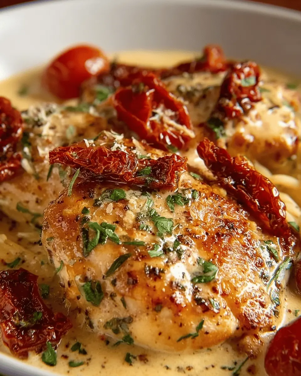 Introducción al Pollo en Salsa Cremosa de Parmesano y Tomates Secos