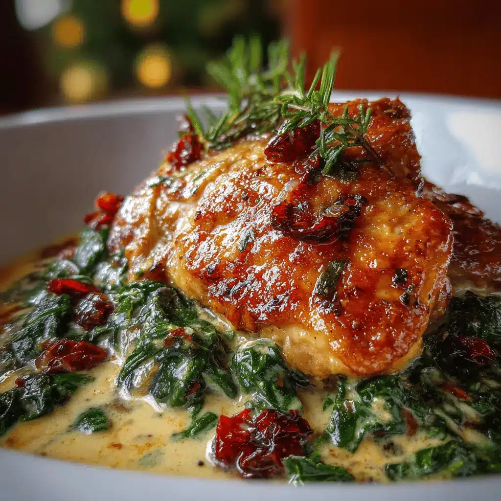 Pollo navideño cremoso con espinaca y arándanos: fácil y delicioso