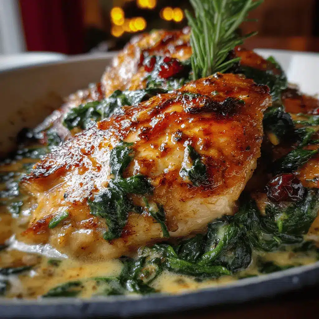 Este pollo navideño cremoso con espinaca y arándanos es un plato fácil y delicioso, perfecto para sorprender a tus invitados durante las fiestas.